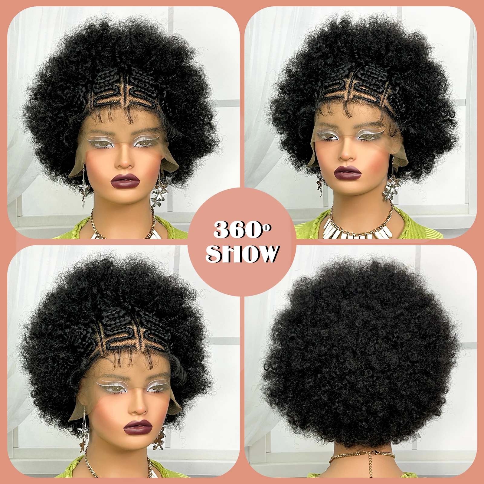 Synthetic Lace Front Afro Kinky Curly Braided Wigs with Baby Hair Short Curly 99J Burgundy Braided Lace Wigs for Black Women