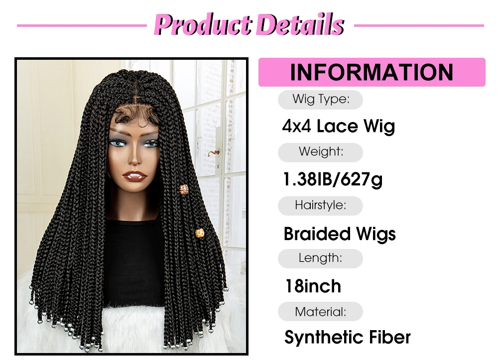 Synthetic Lace Front Wig 4x4 Lace Synthetic Braiding Hair Wig for Black Women 18 Inches Bob Wig Cornrow Braided Wigs African