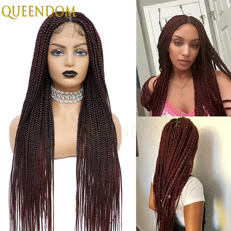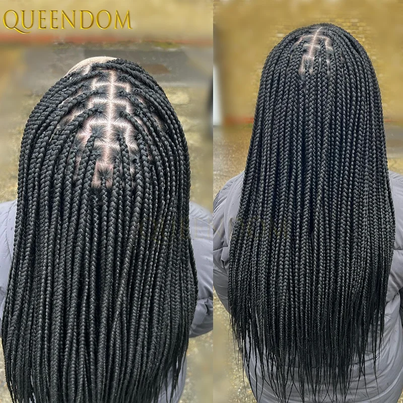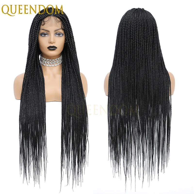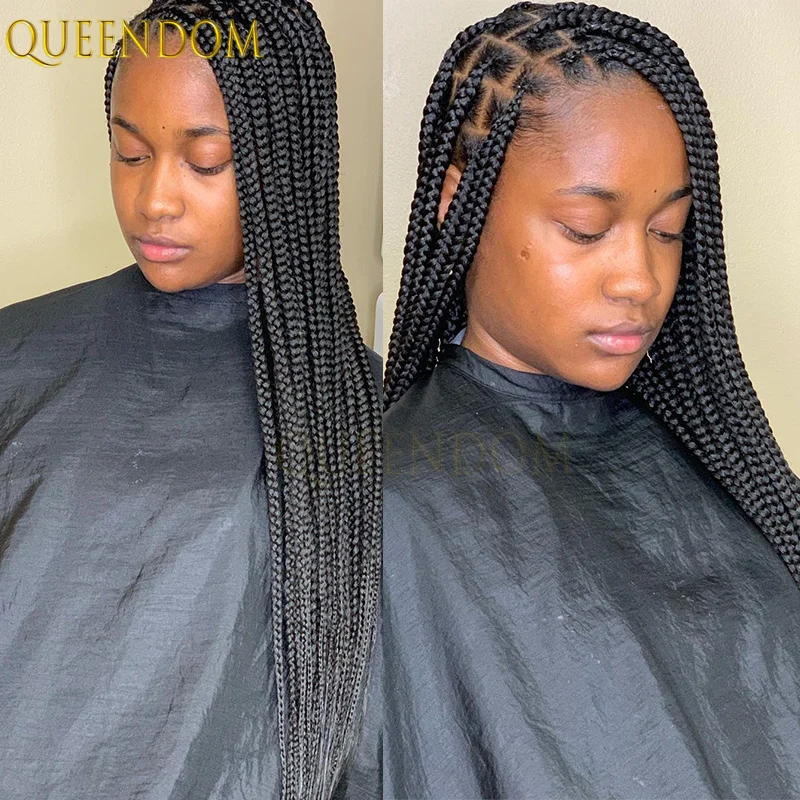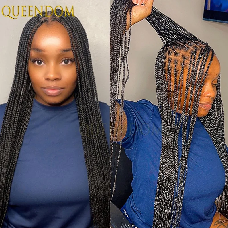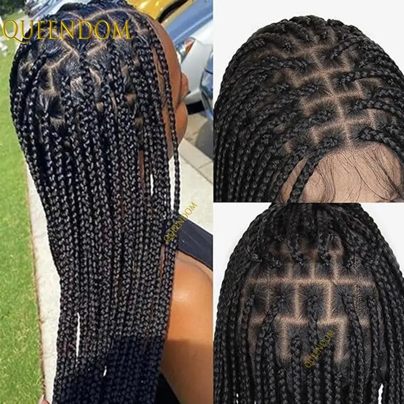 Synthetic Lace Front Wigs 36" Knotless Full Lace Braids Wigs Cornrow Box Braided Wigs Small Box Square Hair Wigs For Black Women