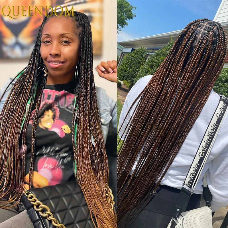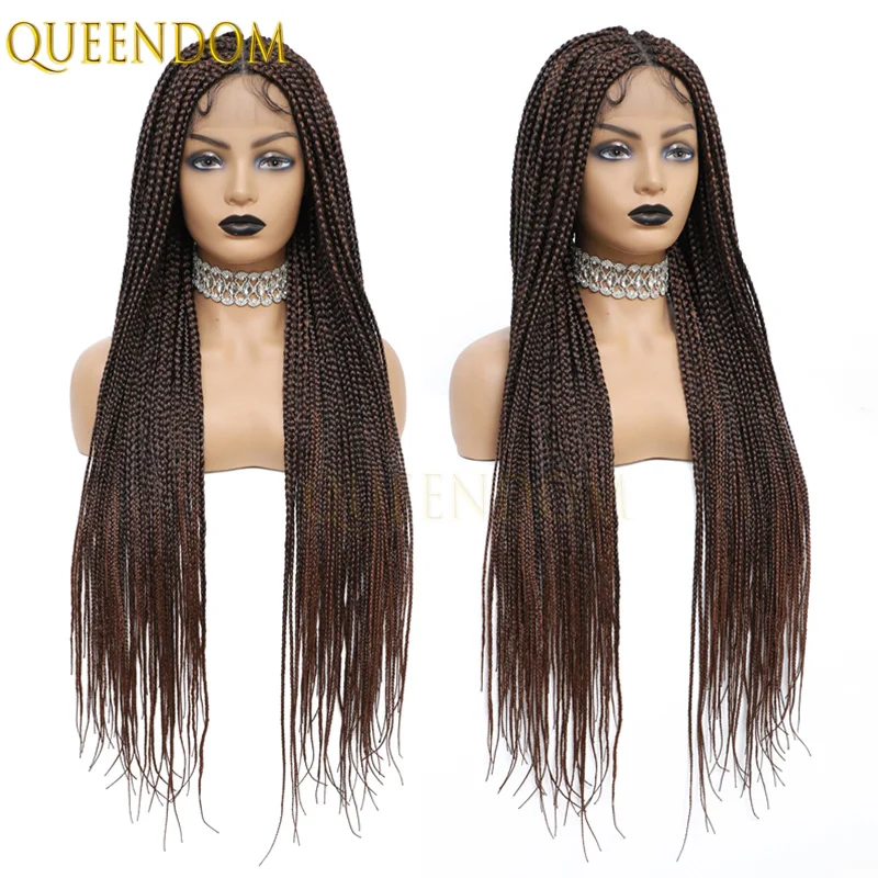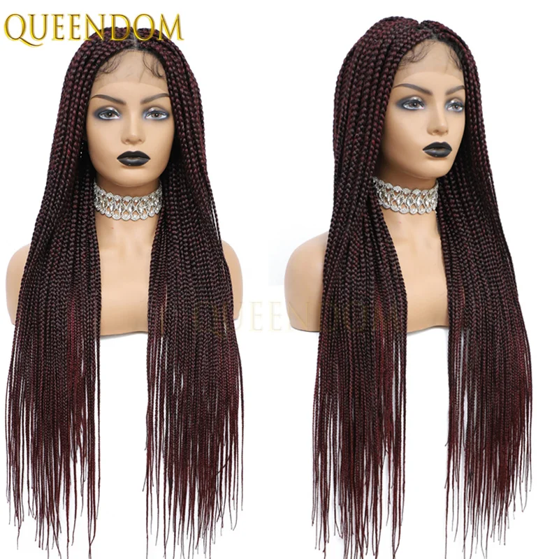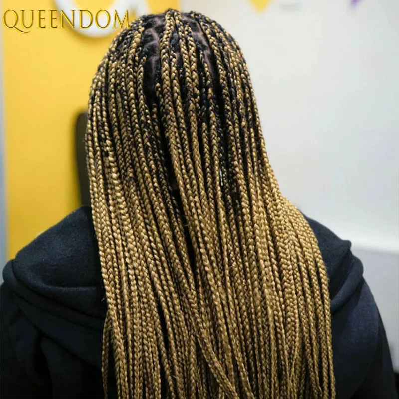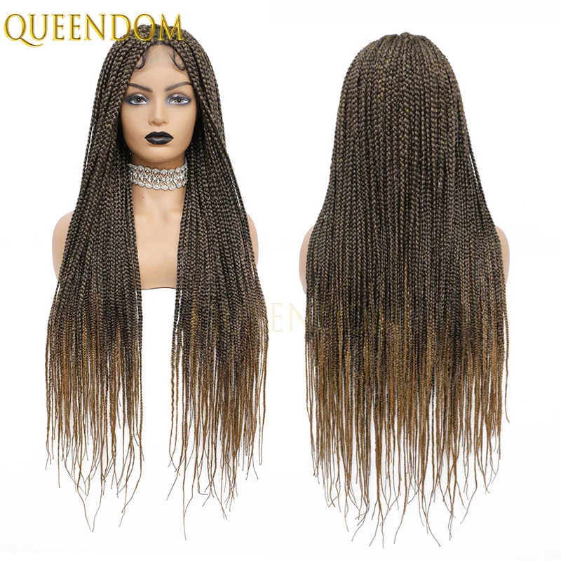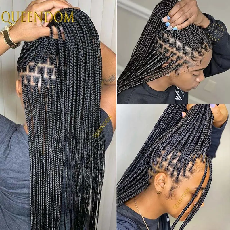Synthetic Lace Front Wigs 36" Knotless Full Lace Braids Wigs Cornrow Box Braided Wigs Small Box Square Hair Wigs For Black Women