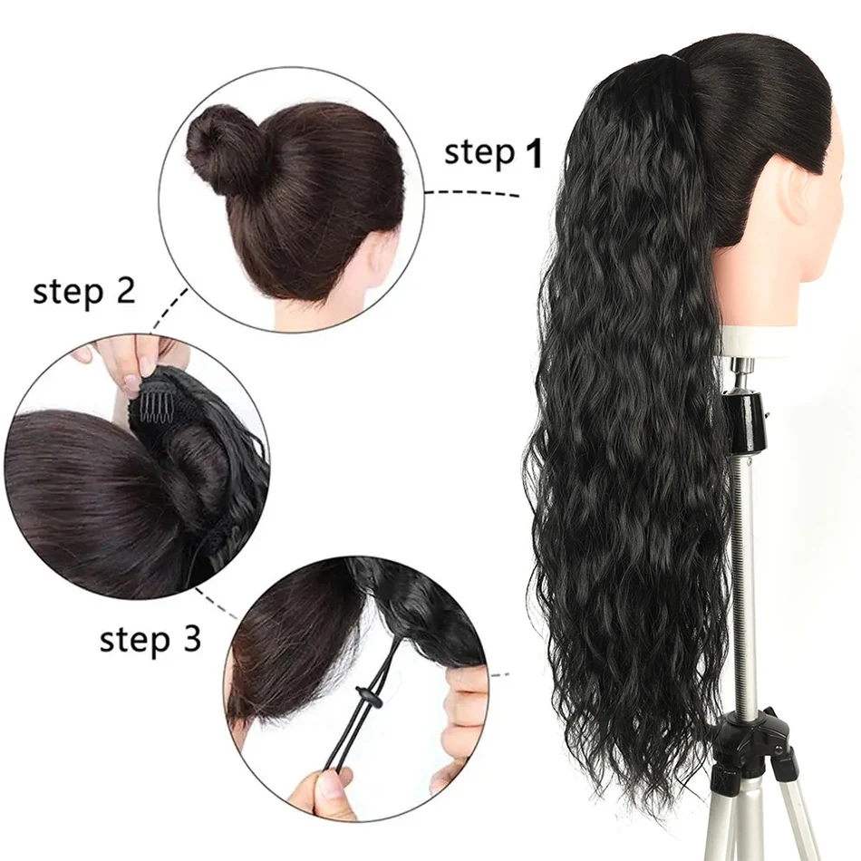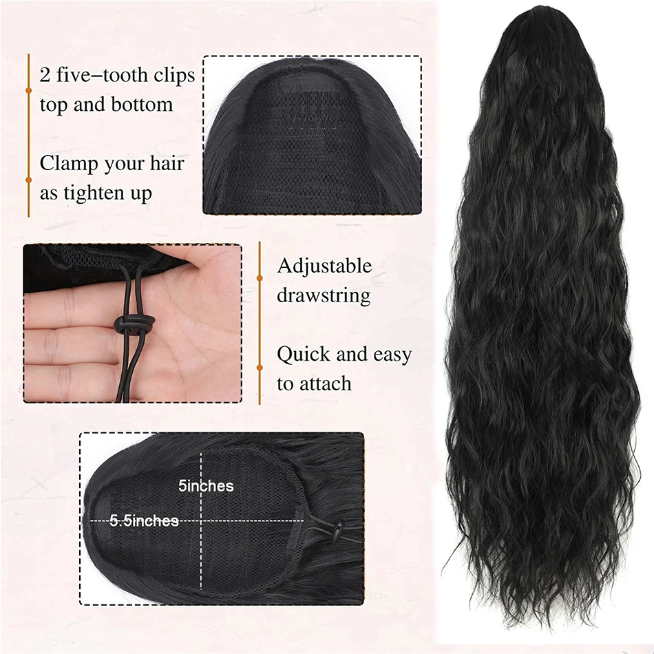 Long Clip in Ponytail Water Wave Drawstring Ponytail Hair Extensions for Women Synthetic False tail for women Natural Hair Piece