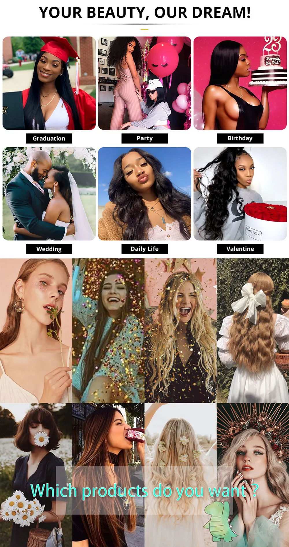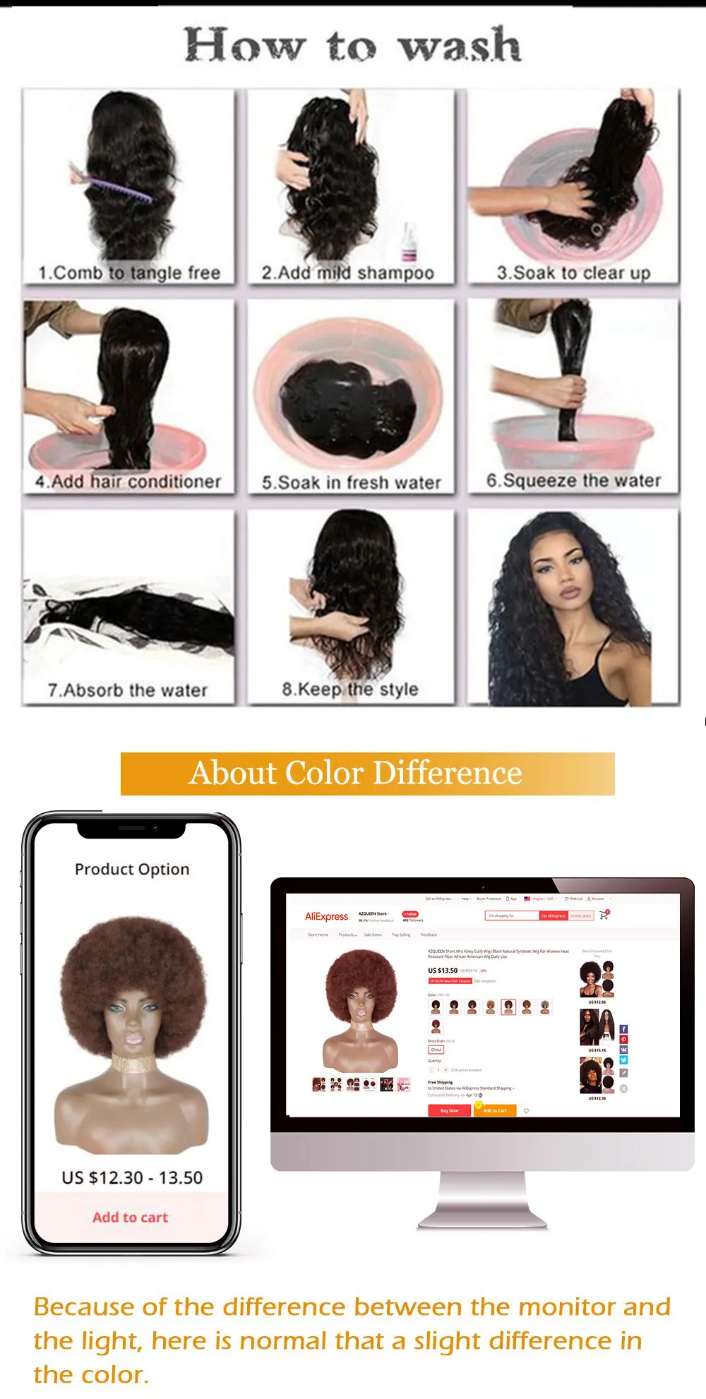 Material:Premium Quality Synthetic Hair, feels silky and soft like real human hair. Fit to all head sizes. Attached by a claw/crocodile clip with drawstring which will make you comfortable for all day Weight: 80G, Length:6"-8" Multiple Colors available in your choice as shown in