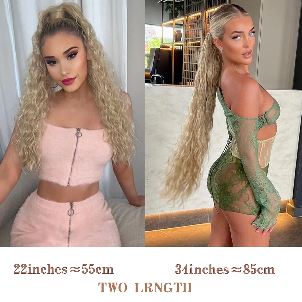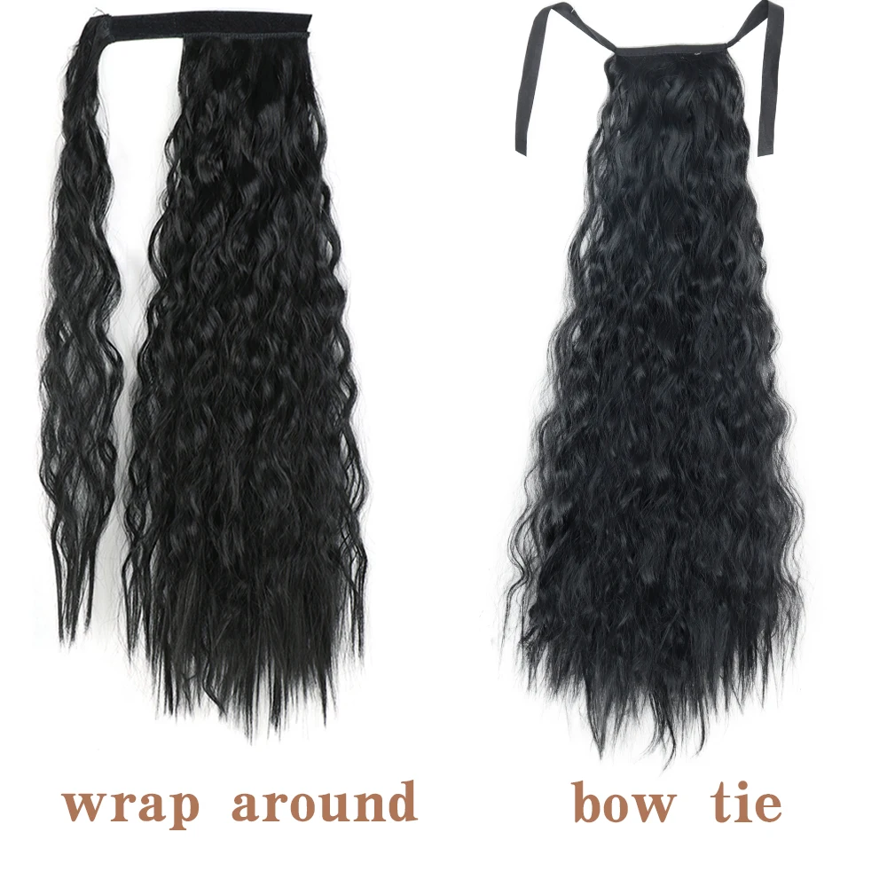 Synthetic Long Corn Wavy Ponytail Hairpiece 55 85cm Wrap Around Hair Clip in Black Ombre Blonde Ponytail Hair Extensions