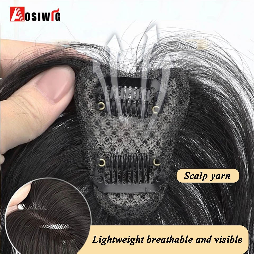 Synthetic Long Straight Topper Wig Clip In Hair Extensions Natural Fluffy Head Top Fake Hair Piece With Bang Clip Black Brown