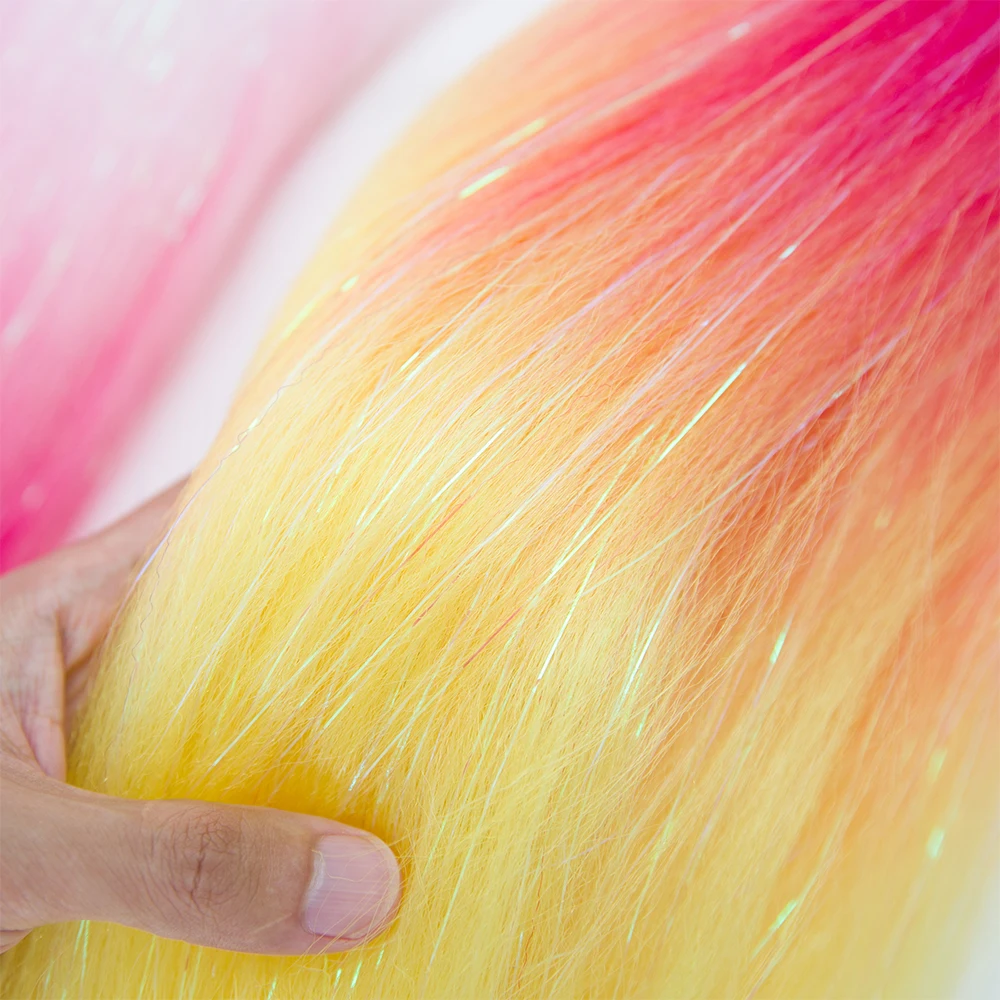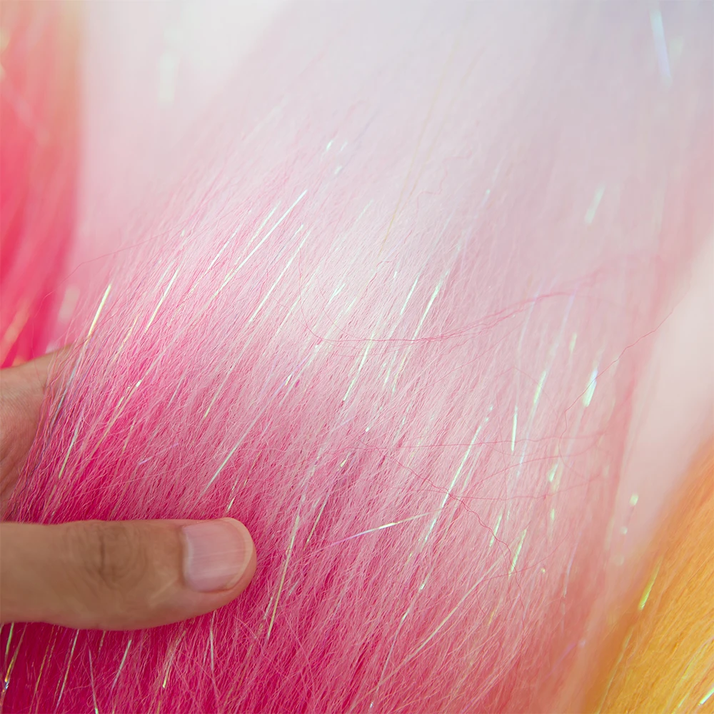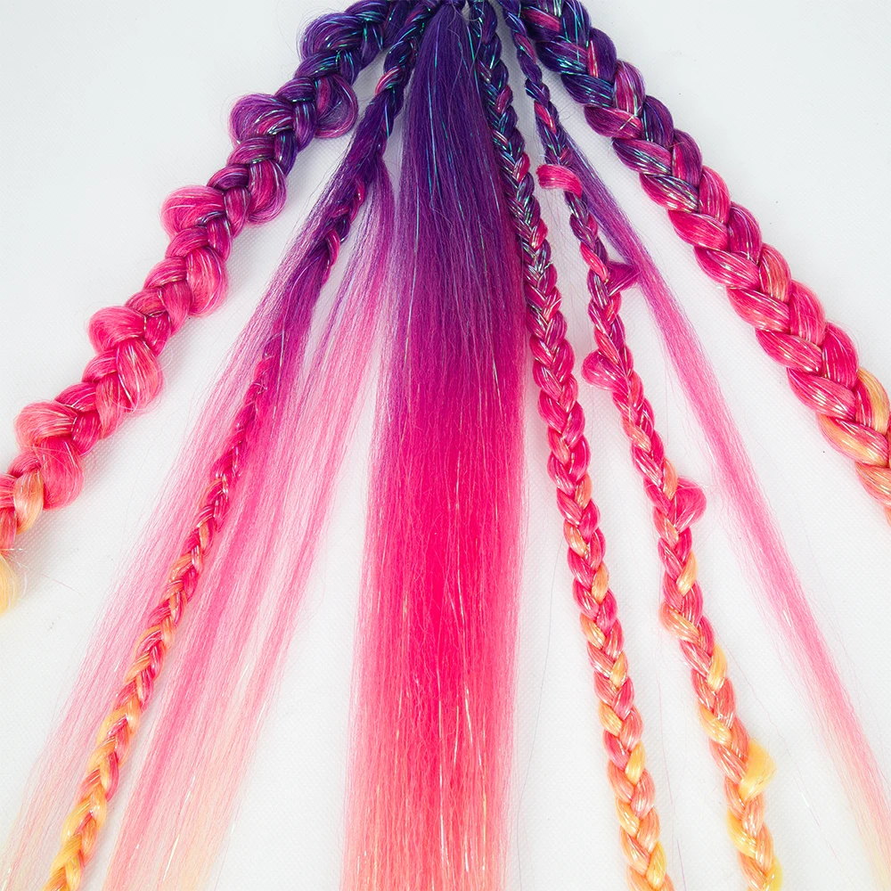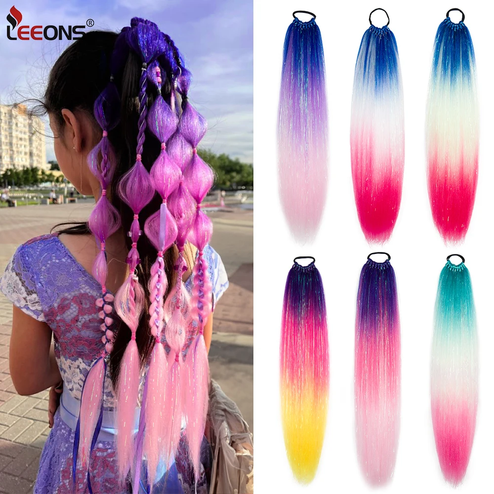 Leeons Rainbow colorful Synthetic Ponytail Hair Bulk Braiding Mixled Tinsel Glitter 24" 130G Braids pony tail Hair Extensions 9 Strands