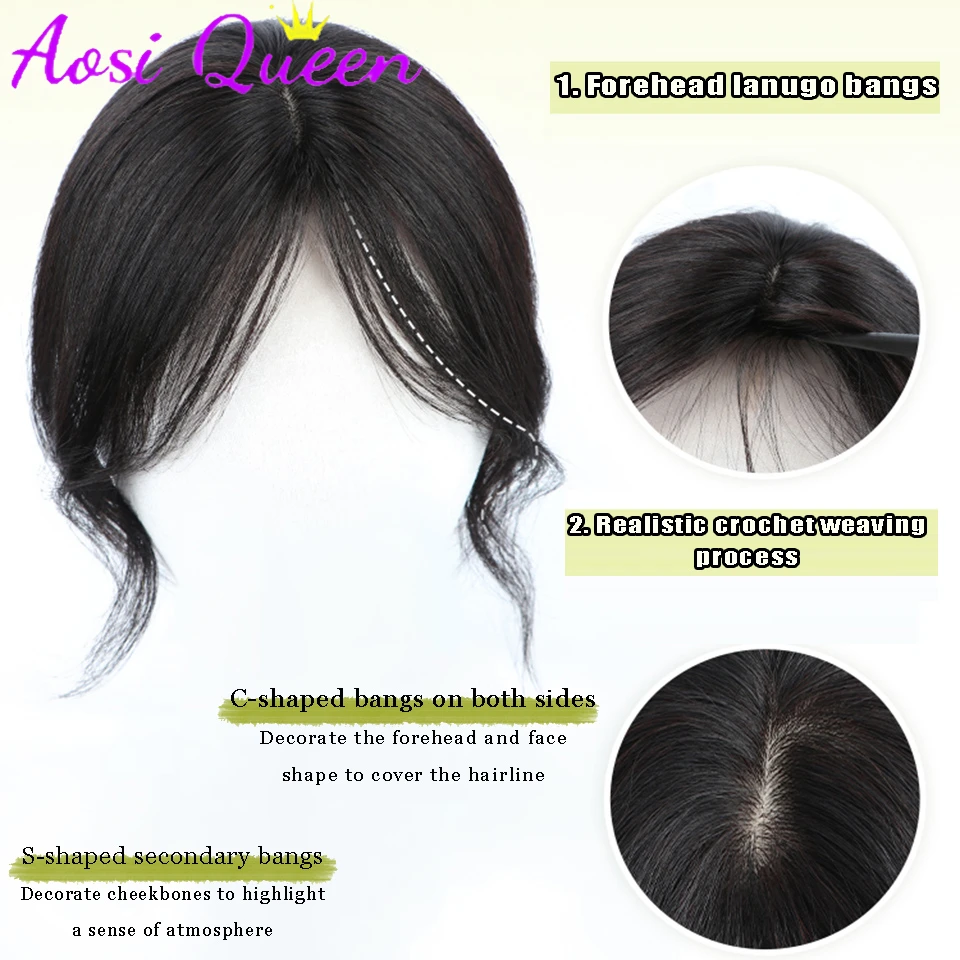 Synthetic S-shaped French Bangs Clip-In Bangs Extension Natural Fake Fringe Topper Hairpiece Invisible Clourse Bangs Covers Hair
