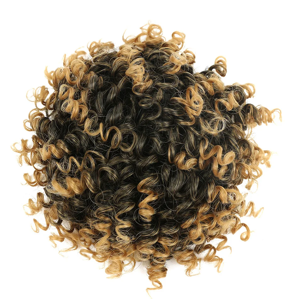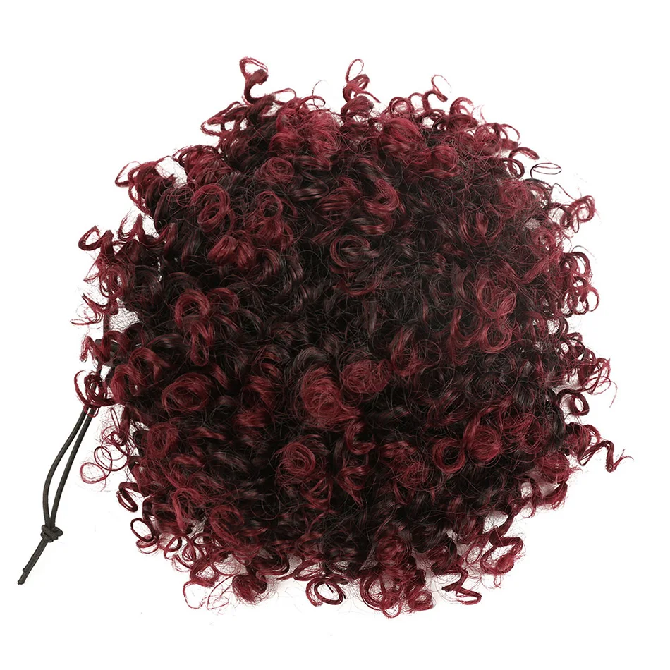Short Afro Puff Hair Bun Ponytail Synthetic Kinky Curly Hair Chignon Hairpieces Drawstring Ponytail Hair Extensions for Women