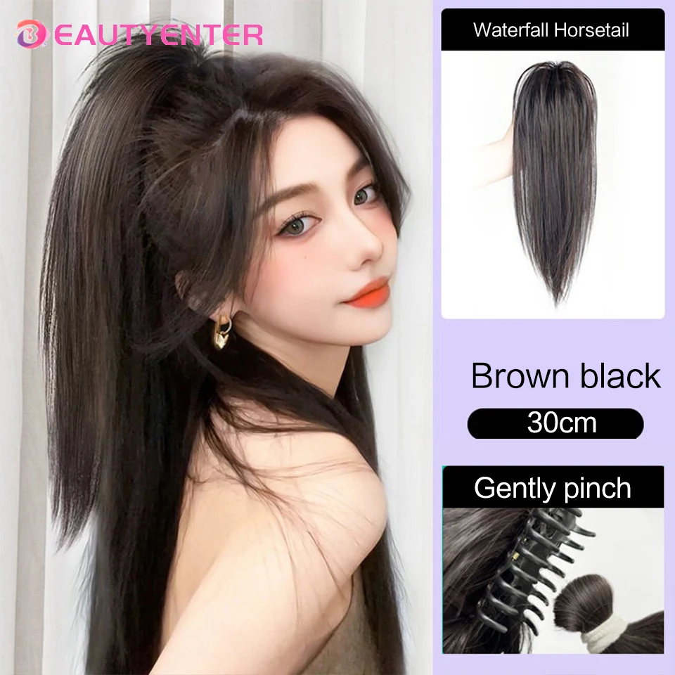 Synthetic Short Straight Claw Clip Ponytail Hair Extensions Natural Tail False Hair For Women Horse Tail Brown Hairpiece