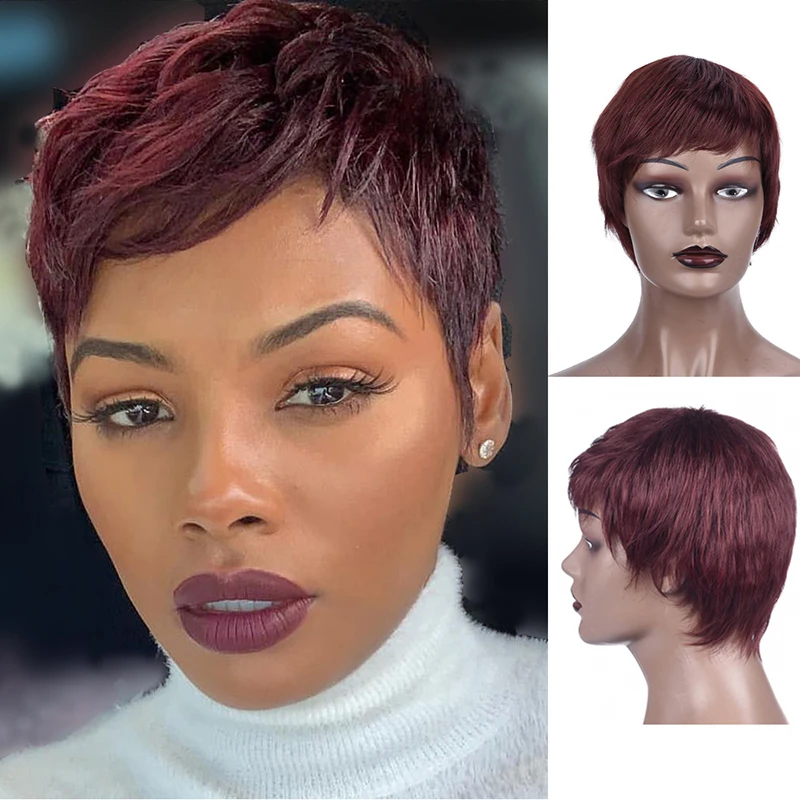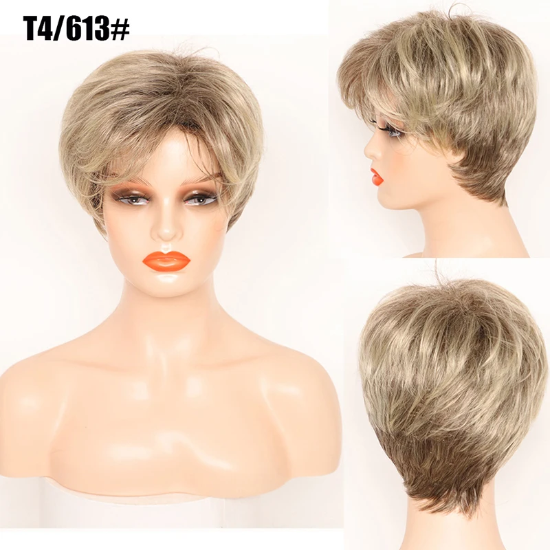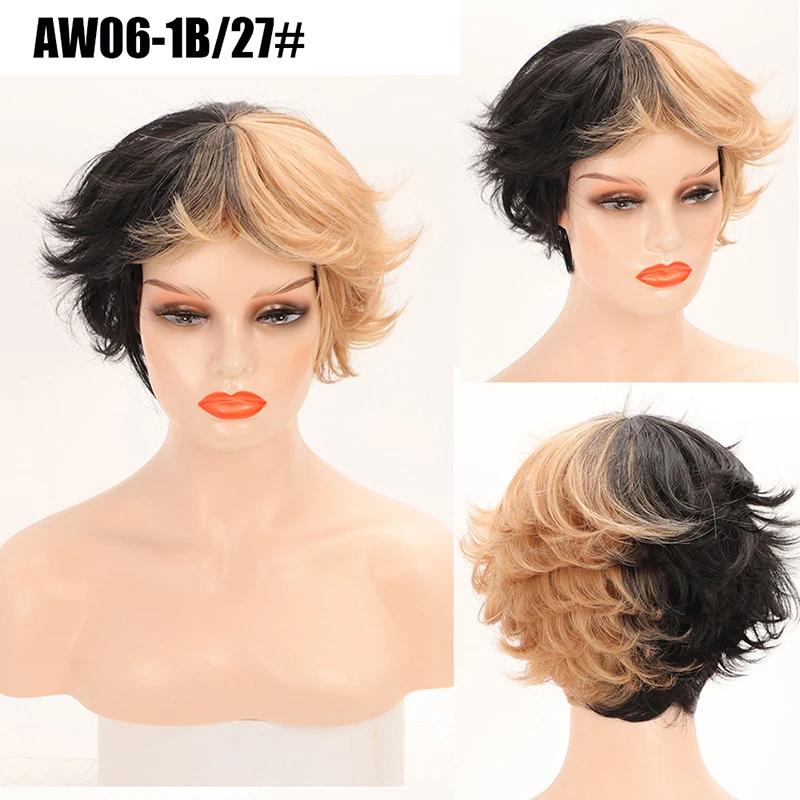 Synthetic Short Straight Wigs With Bangs For Women Heat Resistant Hair Natural Black Brown Blonde Orange Wigs