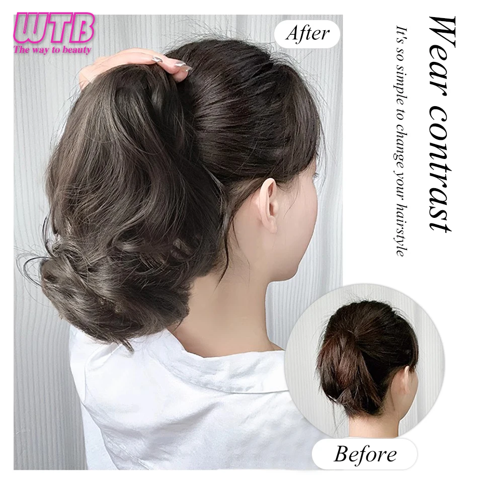 Synthetic Short Wavy Claw Clip Ponytail Hair Extensions Short Curly Natural Tail False Hair For Women Horse Tail Black Hairpiece