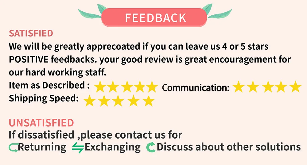 Welcome to Our Store,We are devoted to offer High Quality Products with Reasonable Wholesale Price.If you have any questions about the product, please contact customer service before placing an order.Generally, we need about 3 days to prepare the goods. Please pay more attention to local logistics information