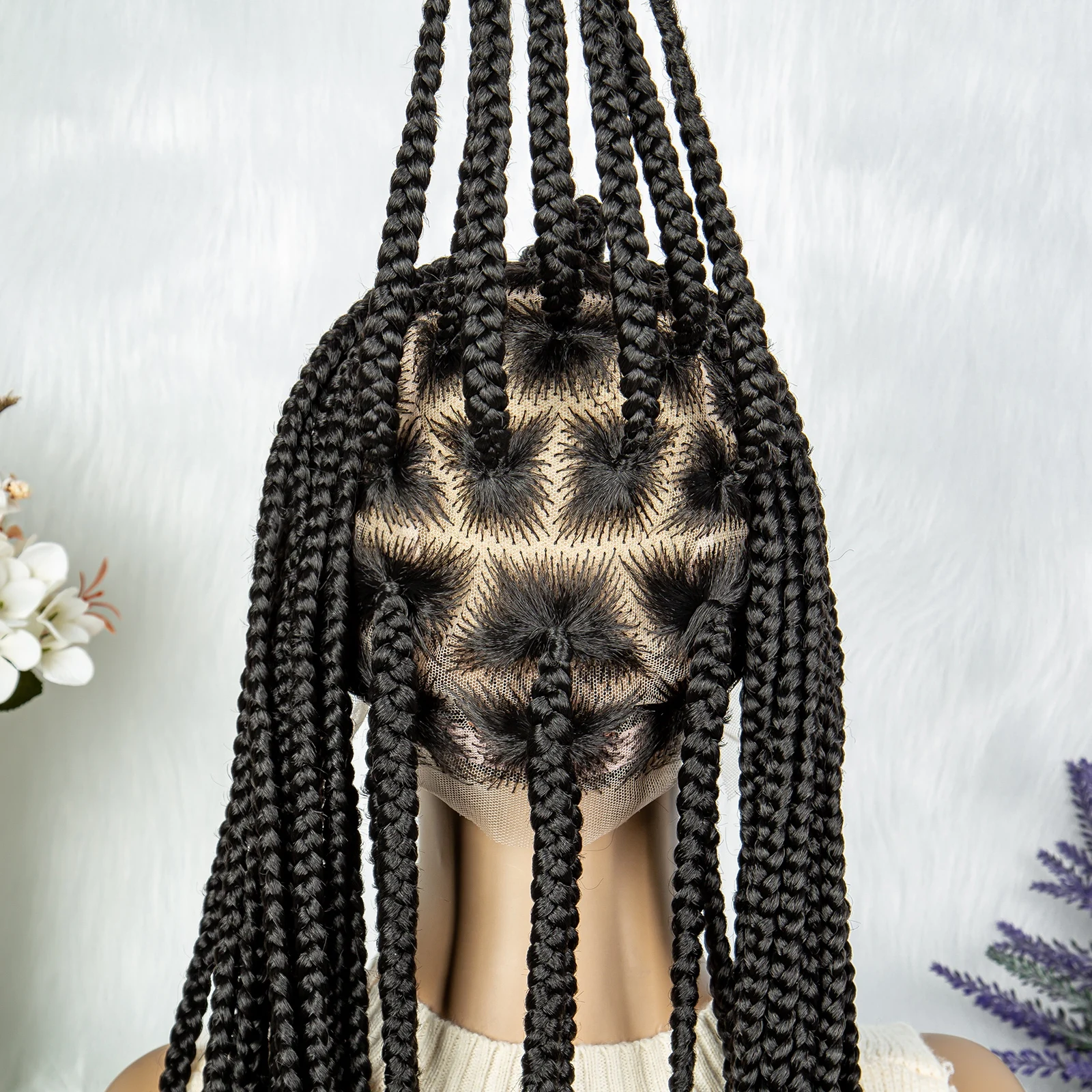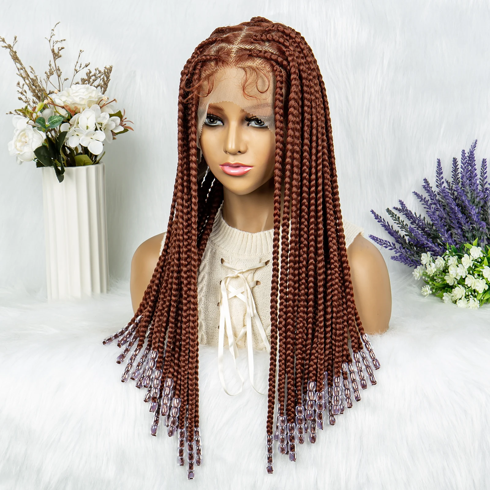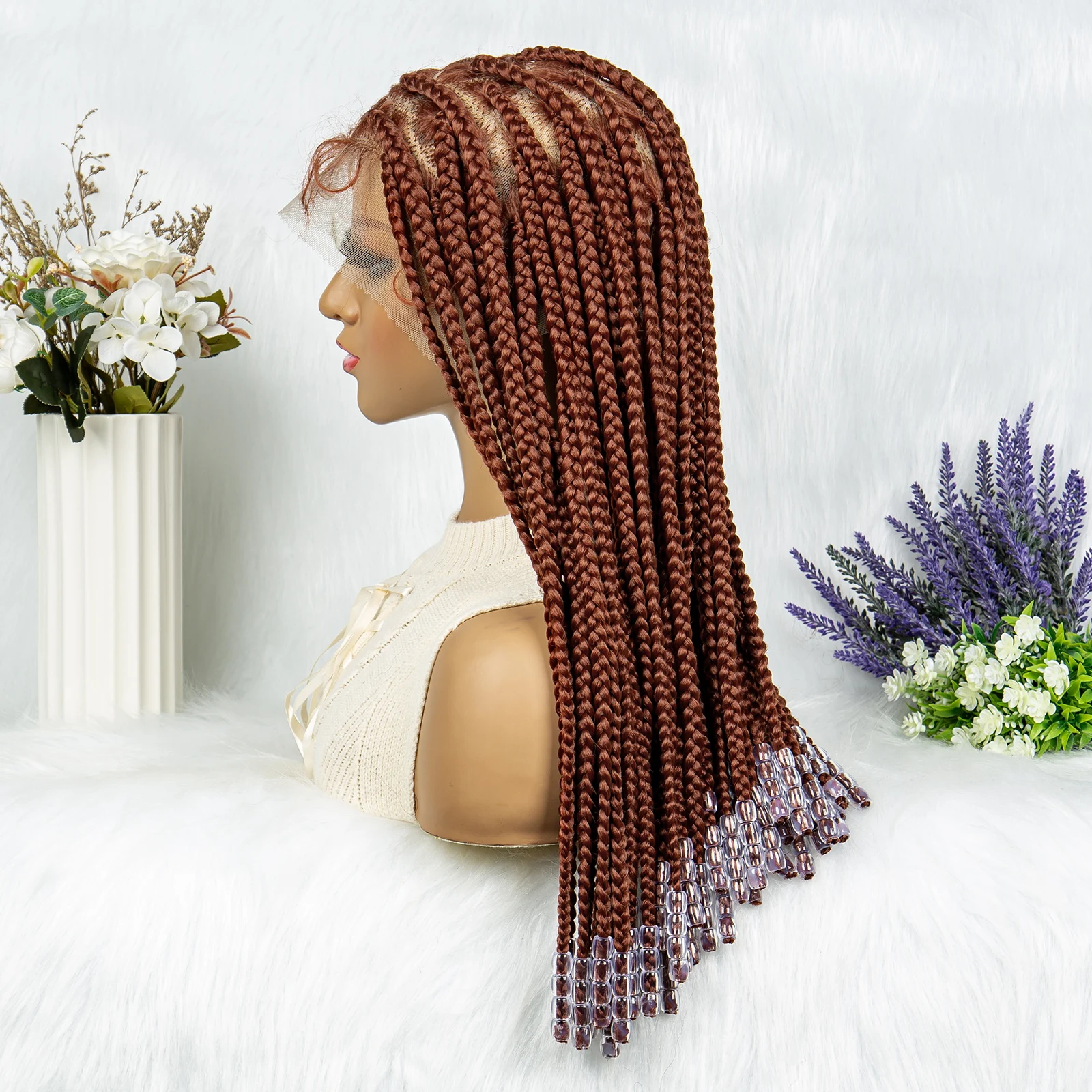 Synthetic Transparent HD Full Lace Braided Wigs With Beads Crochet Braid Braiding Hair Knotless Box Cornrow Braid Faux Locs Wigs