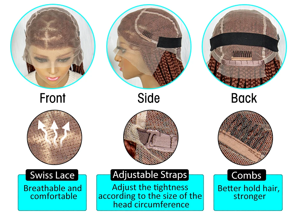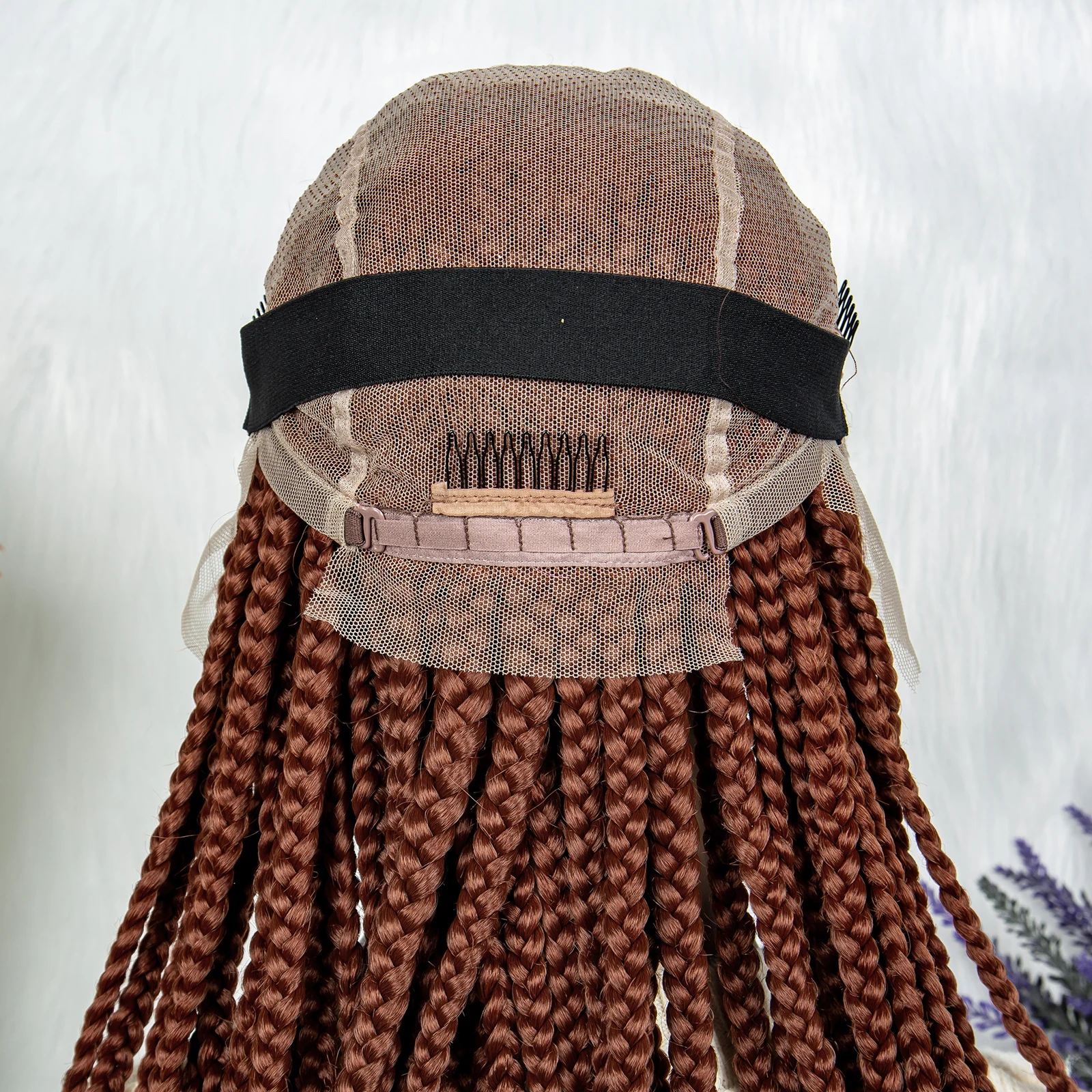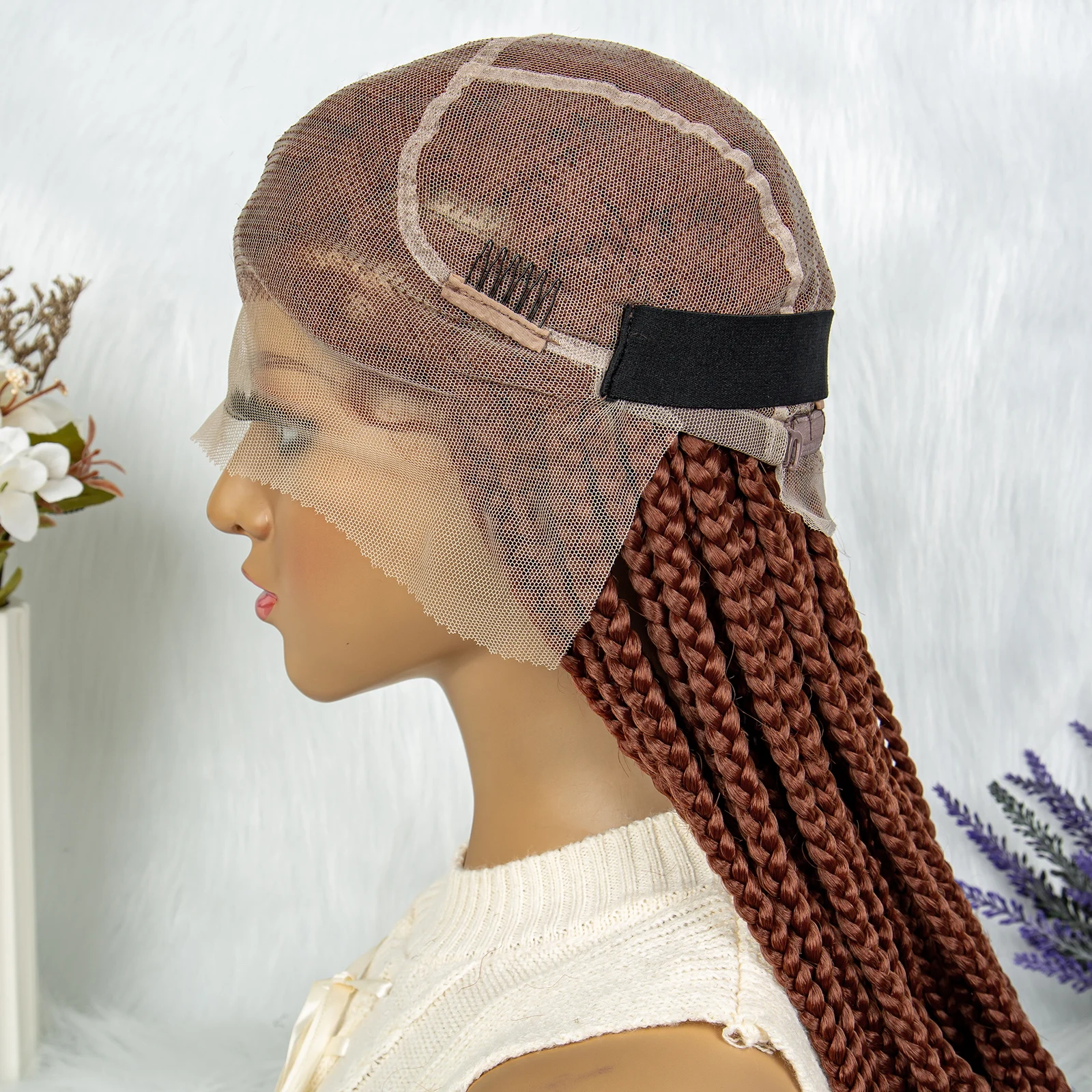 Synthetic Transparent HD Full Lace Braided Wigs With Beads Crochet Braid Braiding Hair Knotless Box Cornrow Braid Faux Locs Wigs