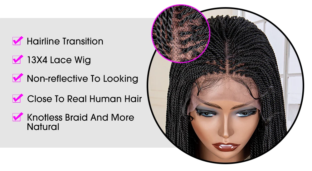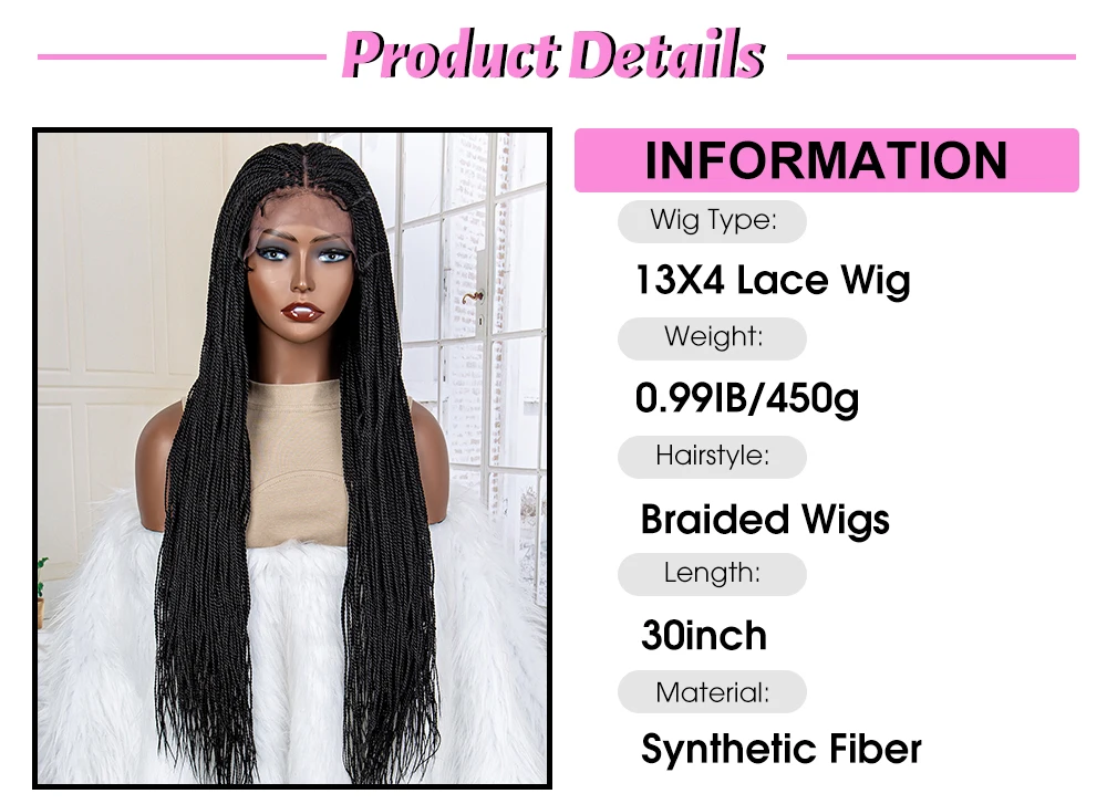 Synthetic Twist Braided Wigs 13x4 Lace Frontal Synthetic Braiding Hair for Black Women Daily Use 30 Inches Braiding Wigs