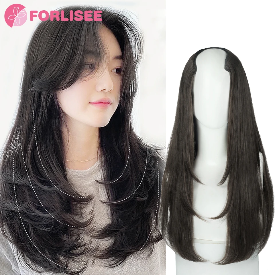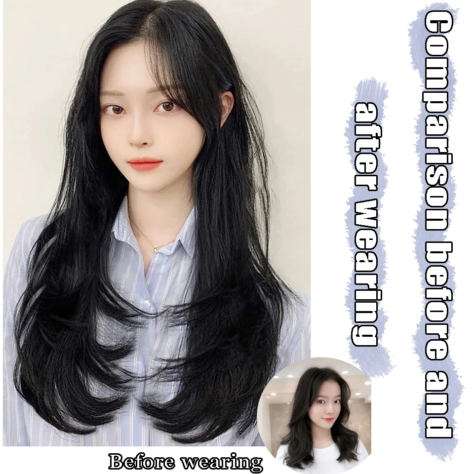 Synthetic Wig Women's Traceless Invisible U-shaped Long Straight Hair With Inner Buckle Long Curly Hair Natural Extension Wig