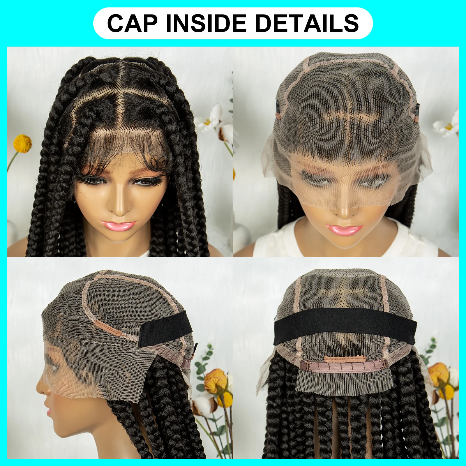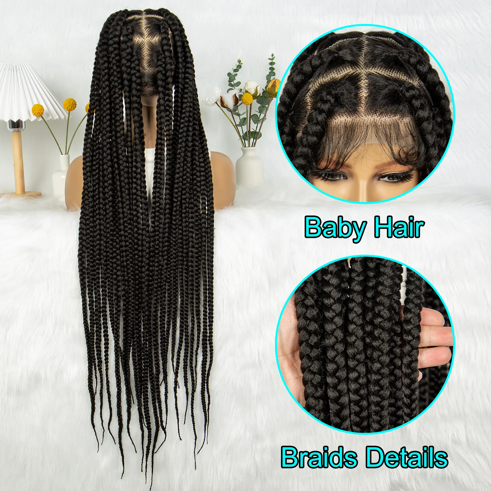 Synthetic Wigs Jumbo Box Braided Wig 36 inch Box Knotless Braid Wigs Transparent Full Lace Wigs with Baby Hair for Africa Women