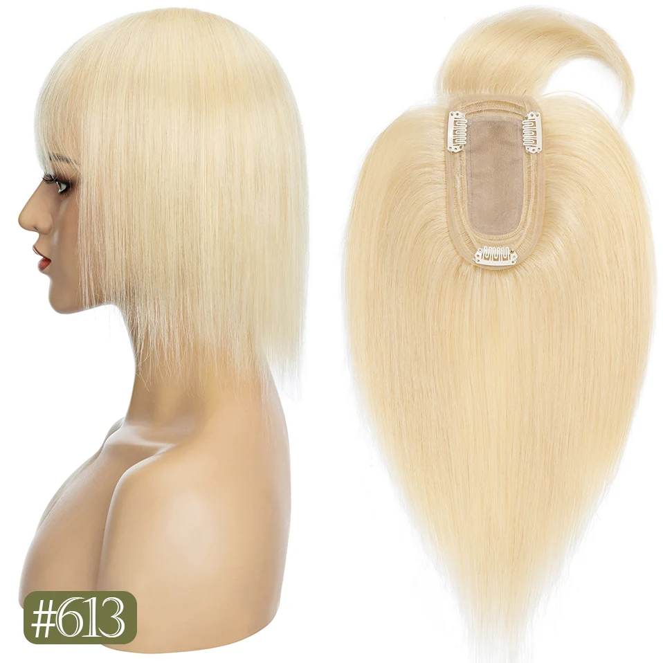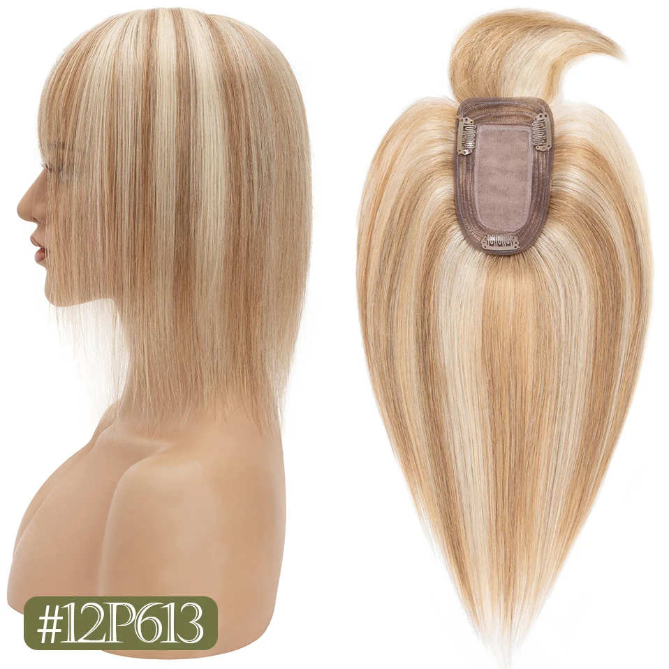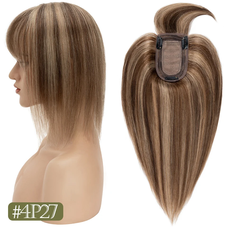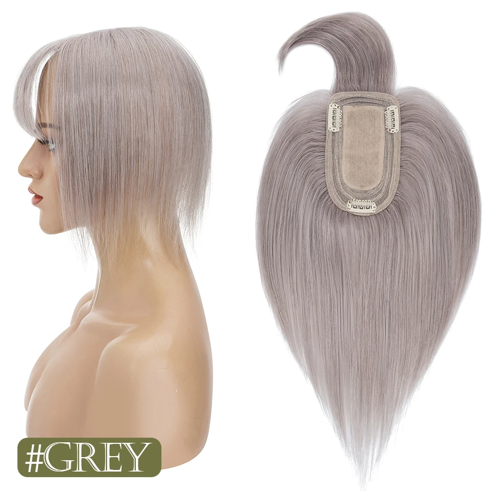 TESS Women Topper 7x12.5cm Hair Toppers With Bangs Natural Hair Wig Human Hair Silk Base Center Part Hair Clip In Hair Extension