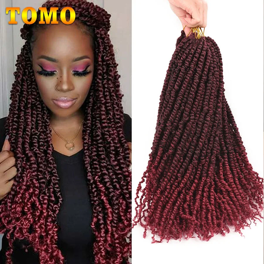 TOMO 12 18 24 inch Pre-twisted Passion Twist Crochet Hair Pre-looped Bohemian Curly Braids Synthetic Braiding Hair Extensions
