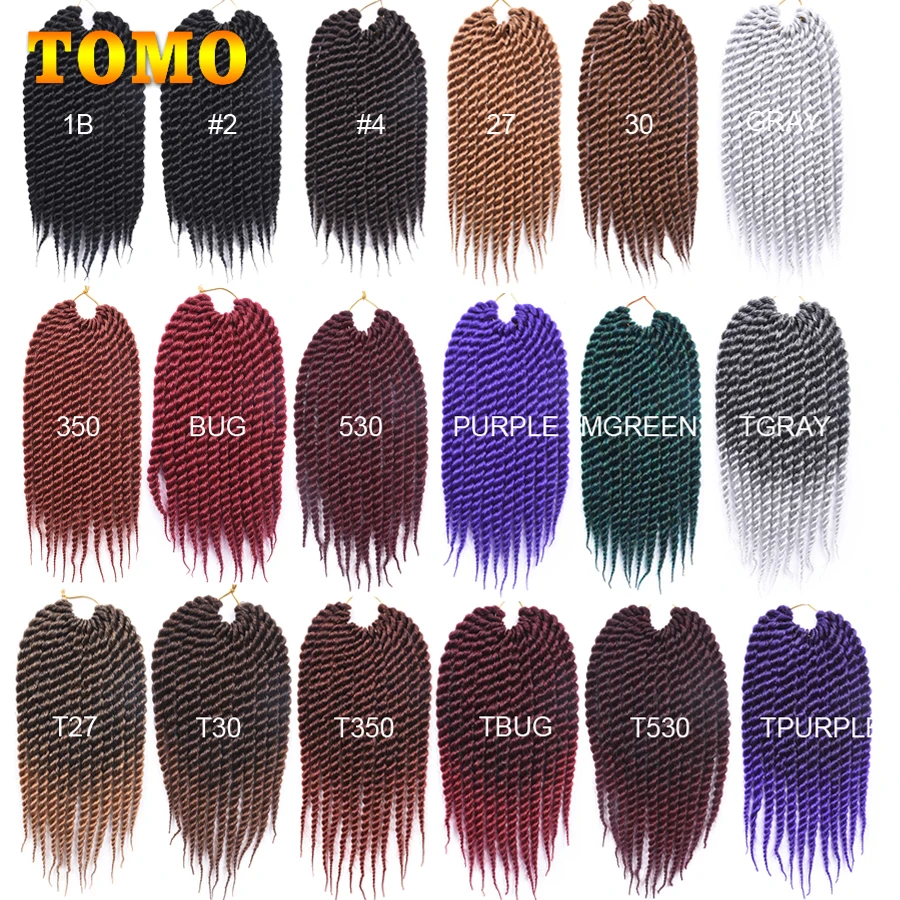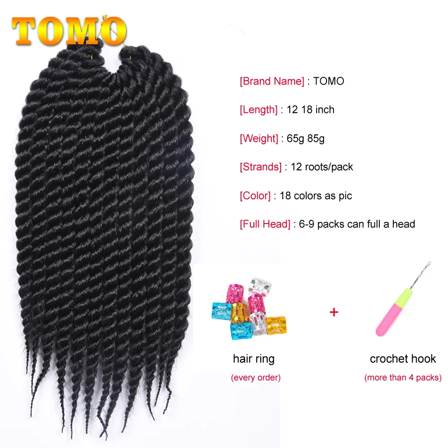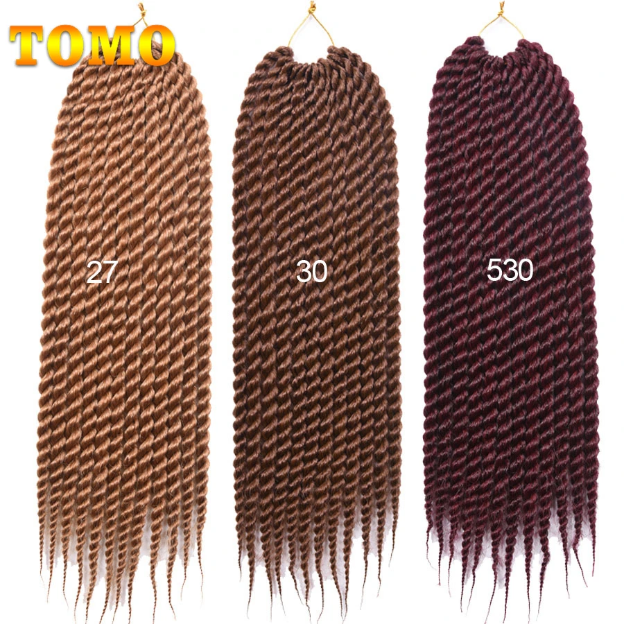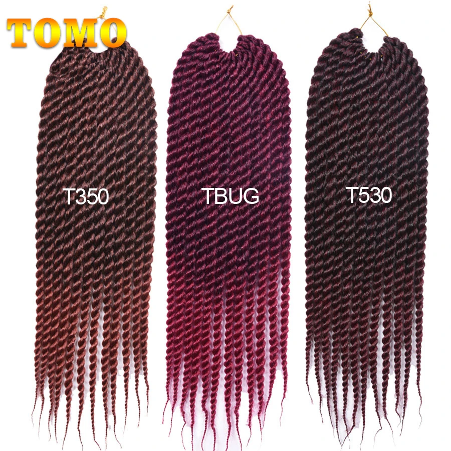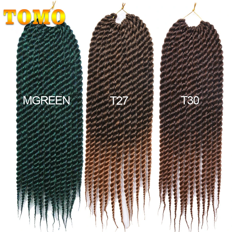 TOMO Jumbo Senegalese Twist Crochet Hair 12" 18 " Ombre Black Brown Color Synthetic Crochet Braiding Hair Extensions 12 Roots