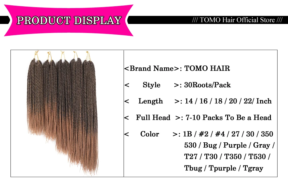 TOMO Synthetic Senegalese Twist Crochet Braid Hair Weaves Ombre Braiding Hair Extensions 30roots Long And Shot Black Brown Red