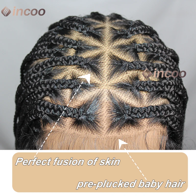 Triangle Knotless Braided Wigs Synthetic Hair Wigs Incoo Full Lace Frontal Wigs Baby Hair Jumbo Box Braids Wig African Wigs 26"