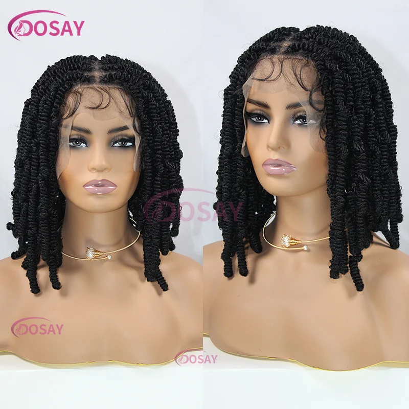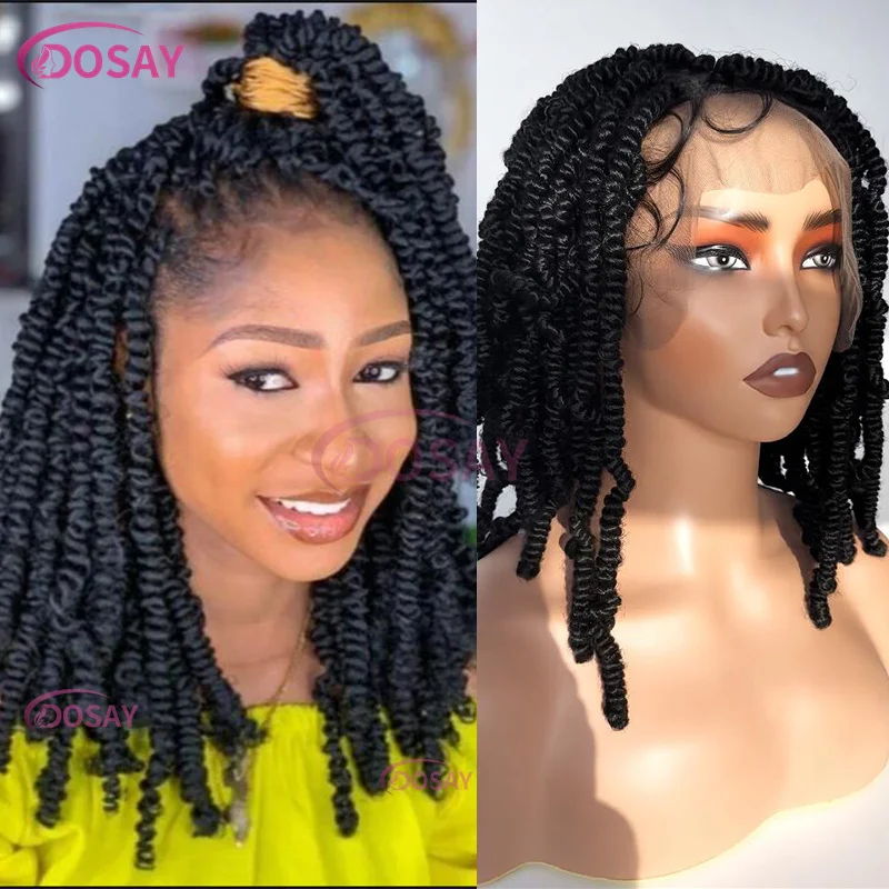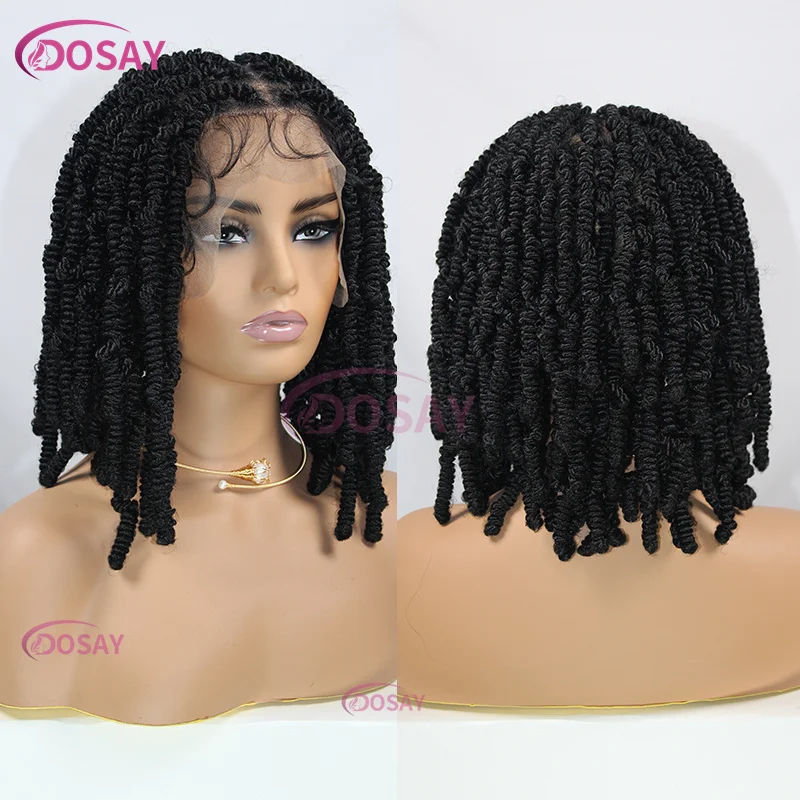 Twist Curls Braid Full Lace Front Wigs Short Bob Braids Wig Goddess Transparent 360 Lace Synthetic Wig Pre-Plucked Baby Hair