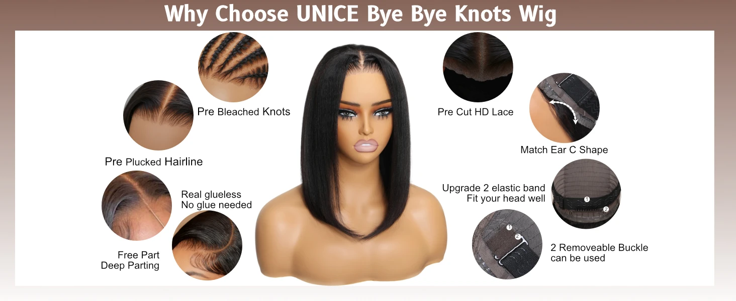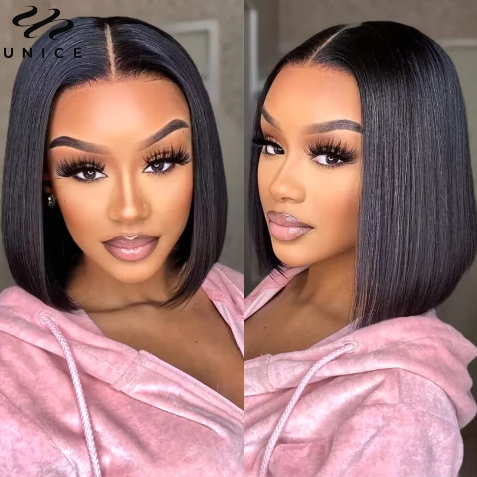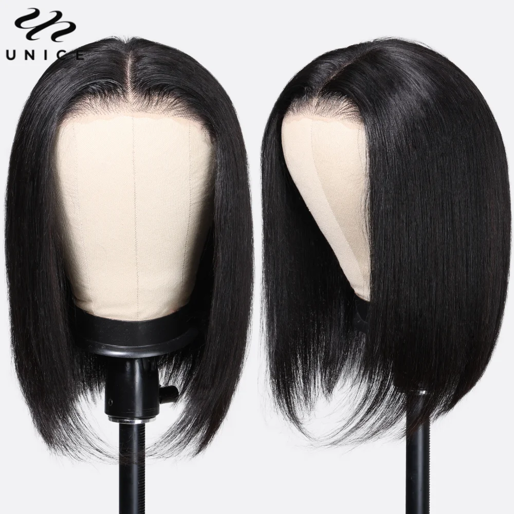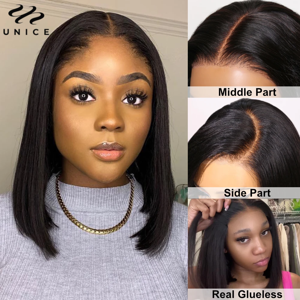 UNice Bye-Bye Knot Wig 7x5 Pre Cut Lace Closure Wig Human Hair Bob Wig Wear Go Glueless Wig Short Bob Lace Wigs for Women