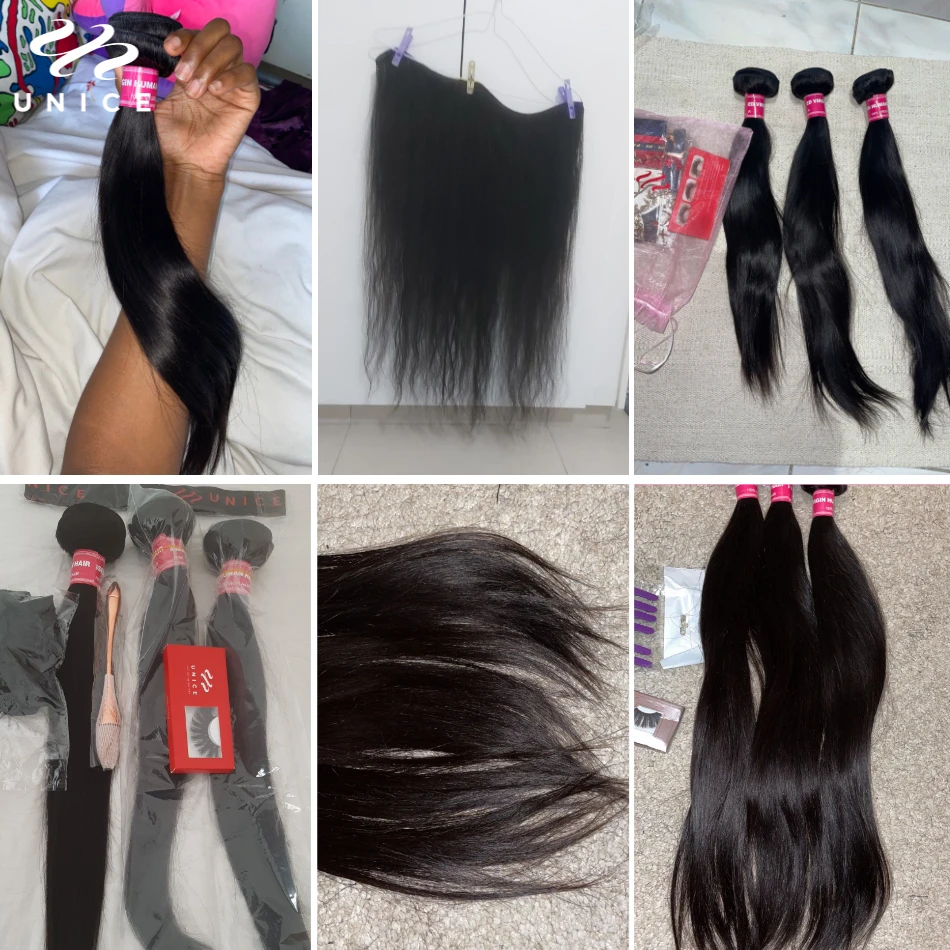 UNice Hair 5X5 HD Lace Closure 28 30 Inch With Peruvian Straight Hair 3 Bundles 4PCS 4x4 Swiss Lace Human Hair Weave Remy Hair