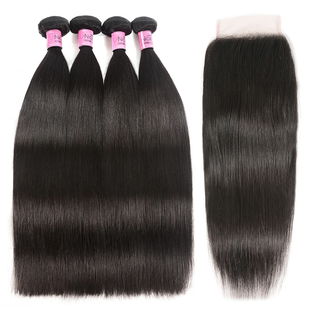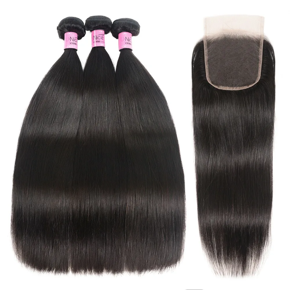 UNice Hair 5X5 HD Lace Closure 28 30 Inch With Peruvian Straight Hair 3 Bundles 4PCS 4x4 Swiss Lace Human Hair Weave Remy Hair
