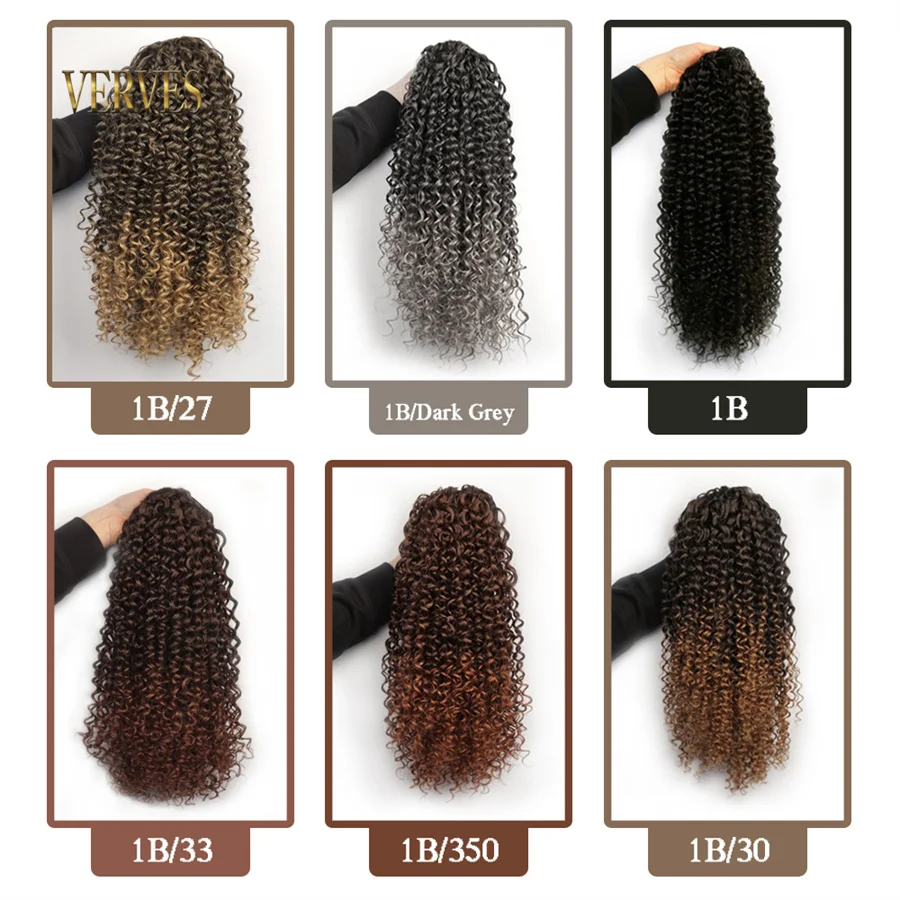 VERVES Synthetic Drawstring Puff Ponytail Afro Curly 16 Inch Hair Extension Clip In Pontail African Ombre Long Hair