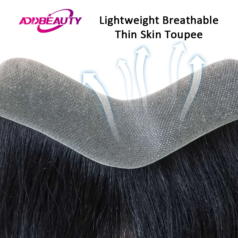Lightweight Breathable Thin Skin Toupee Human Hair Wigs for Men