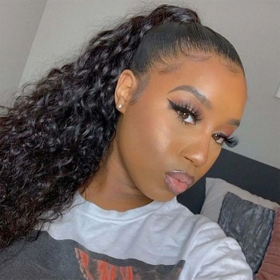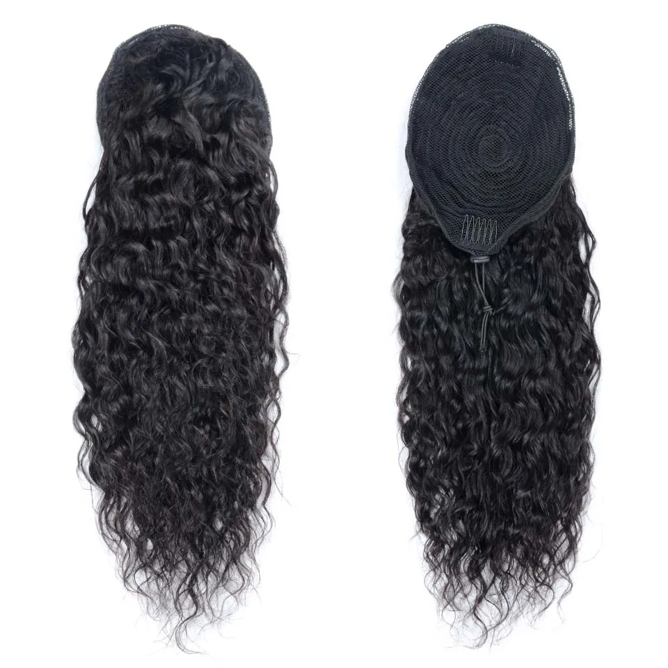 Water Wave Drawstring Ponytail Human Hair Extensions Brazilian Natural Hairpiece With Clip Ins 100-150g Aliballad Remy Pony Tail