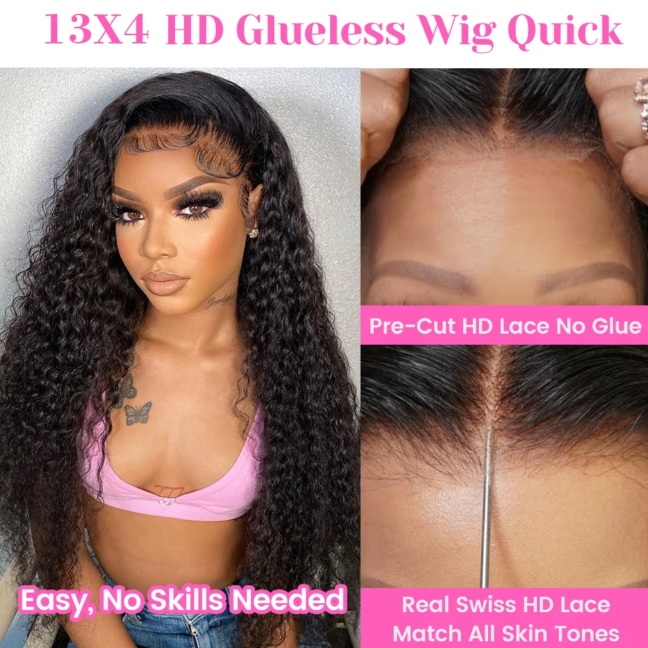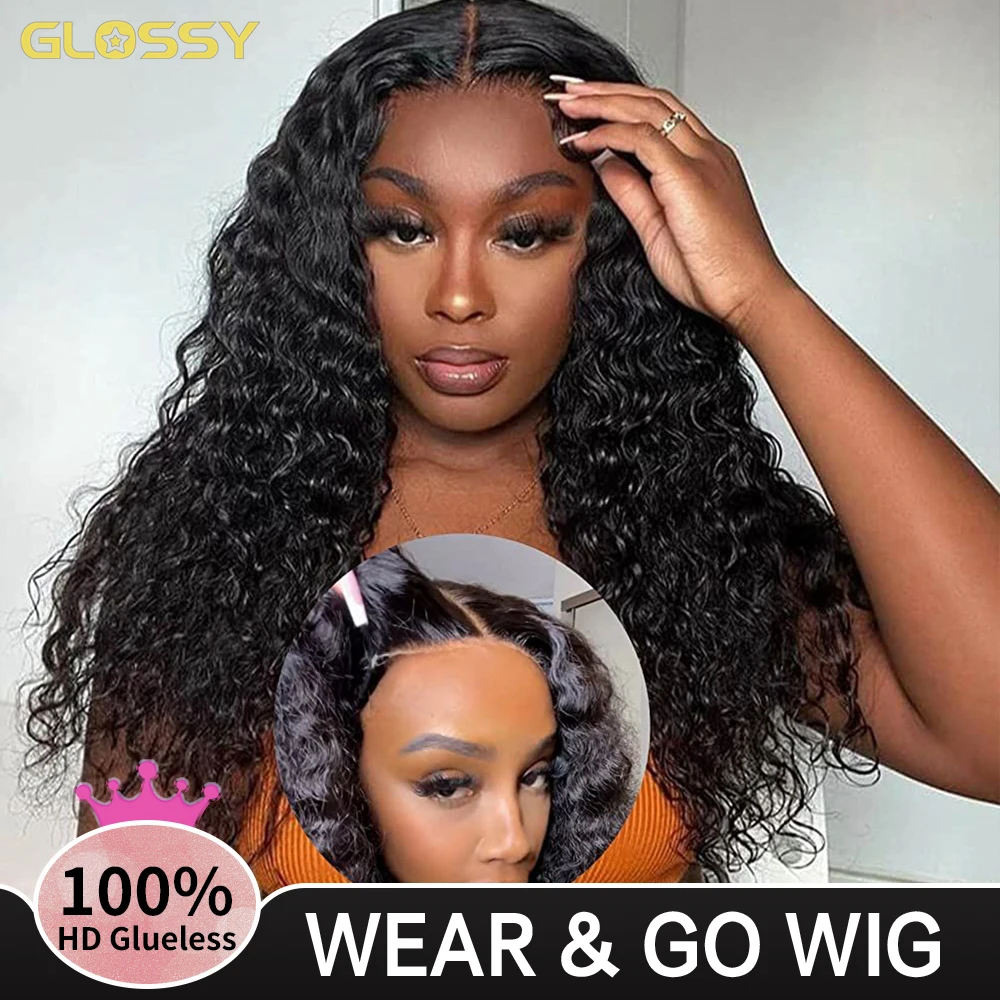Water Wave Glueless Wig Human Hair Ready To Wear And Go Pre Plucked Lace Front Wigs For Women 6x4 Hd Curly Deep Wave Frontal Wig