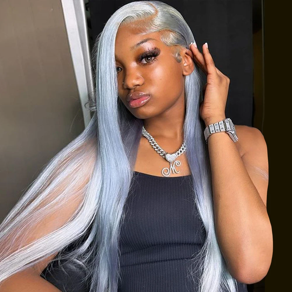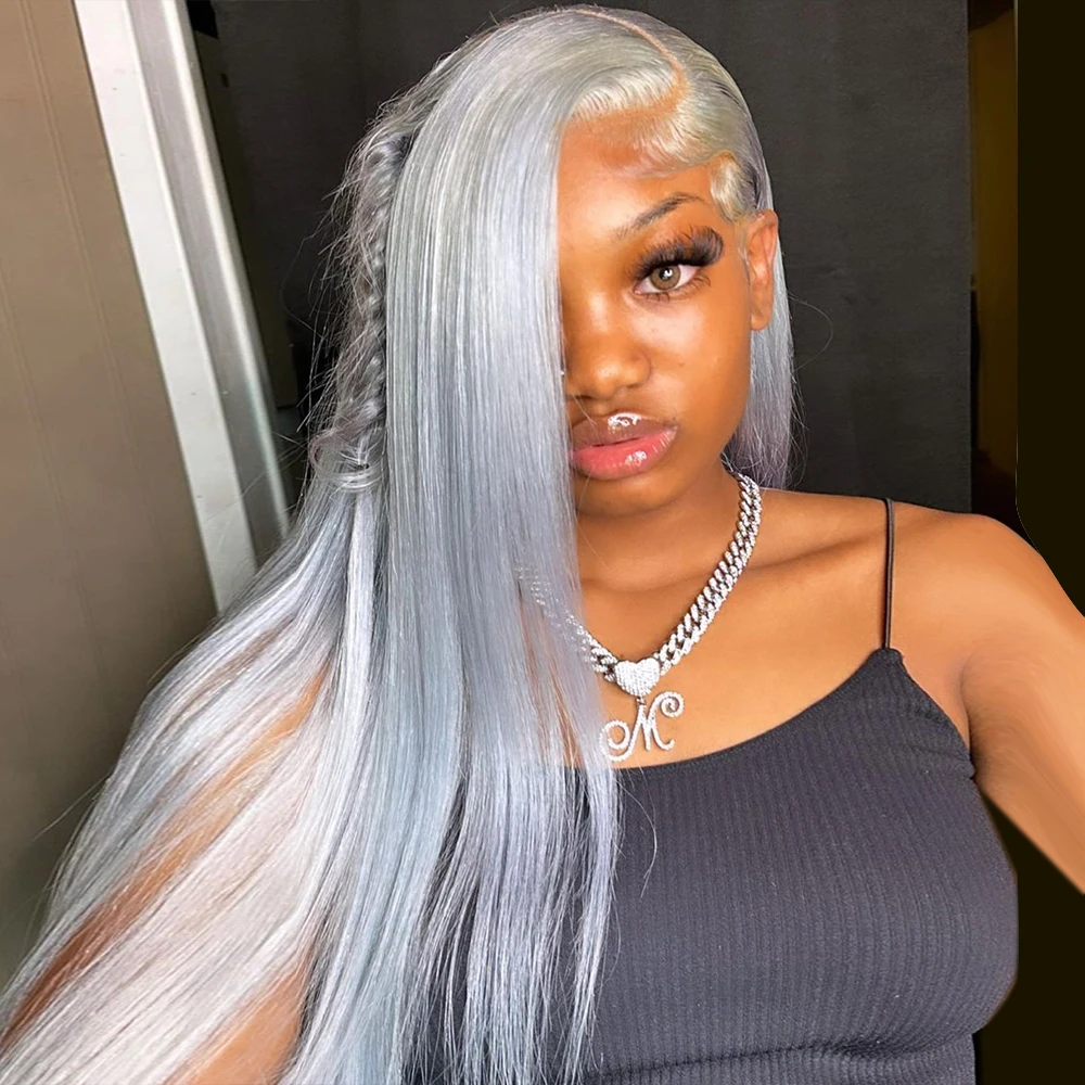 Wear Go Glueless Wig 13*4 13*6 HD Lace Frontal Wig Straight Silver Grey 613 HD Lace Front Colored Human Hair Wigs For Women