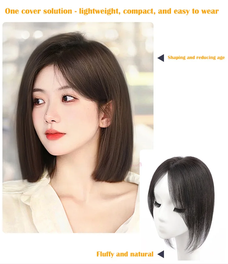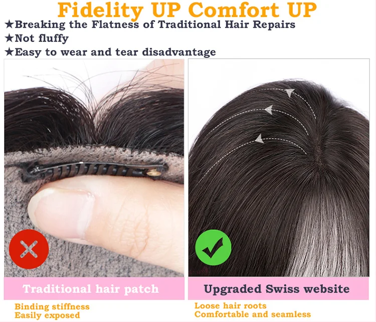 Wig For Women head Replacement high Cranial Crown Increased Hair Volume Covering White Hair Fluffy Full Human Hair