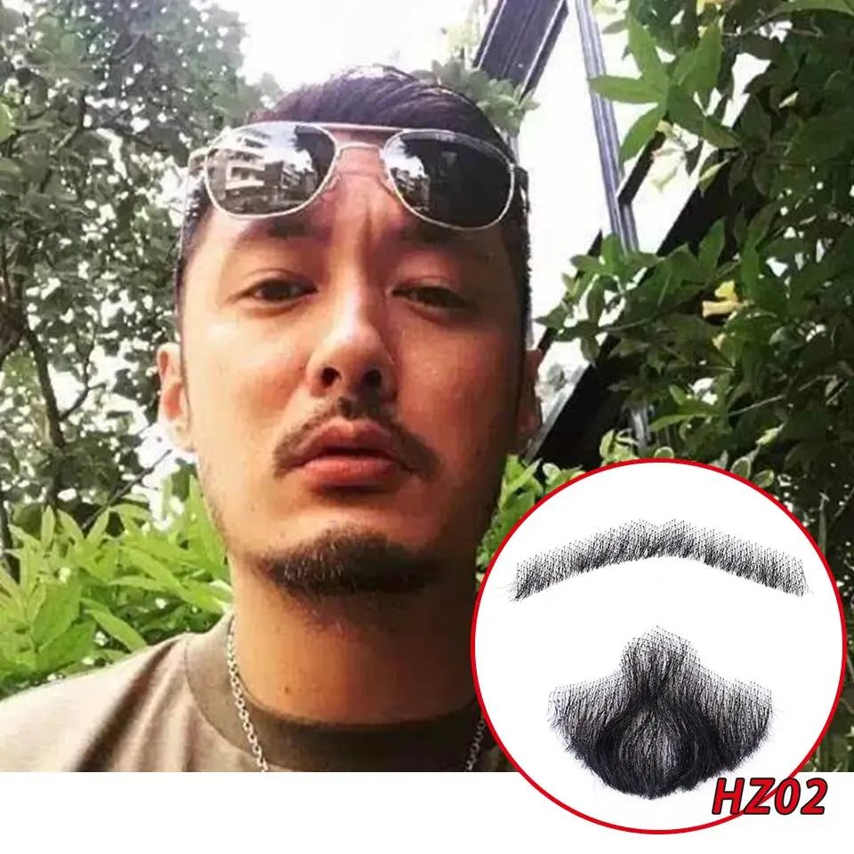 Wigundle Man's Beard Hand Made Real Hair Fake Beard Mustache Fancy Synthetic Invisible for Makeup Fake Hair Cospaly Party Tools