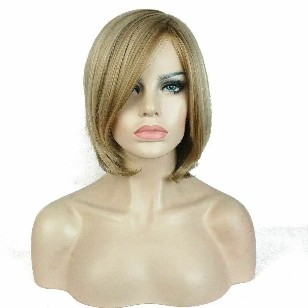 Women Bob Wig Short Straight Synthetic Natural Blonde Mix Highlights Daily Hair