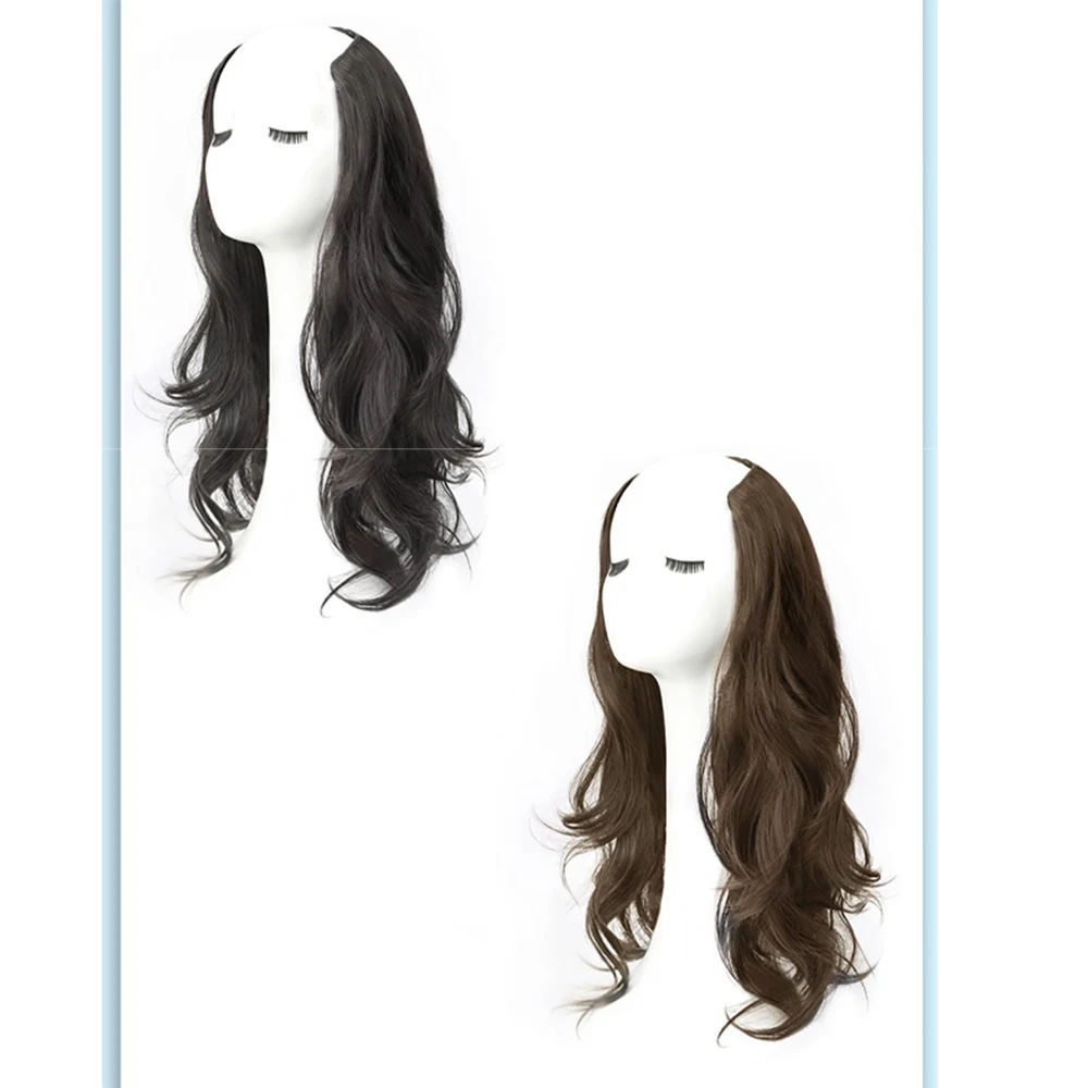 Women Long Curly Invisible Seamless V-shaped Wig Simulated Increase Volume Fluffy High-level One-piece Hair Extension
