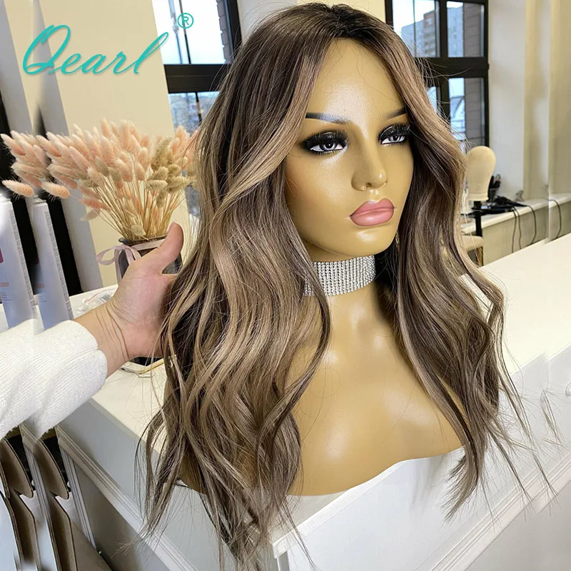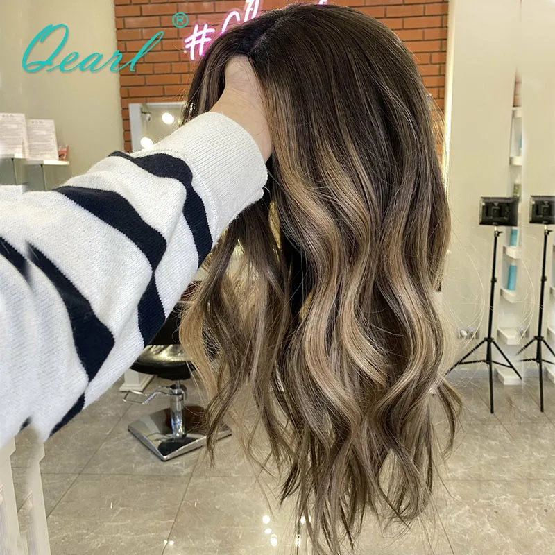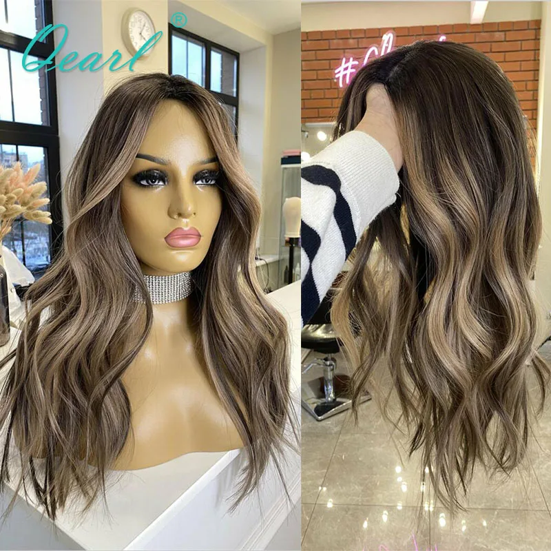 Women Real Human Hair Wig HD 360 Lace Frontal Wigs Dark Honey Blonde Highlights Colored Loose Wave Full Lace Wig Top Sale Qearl
