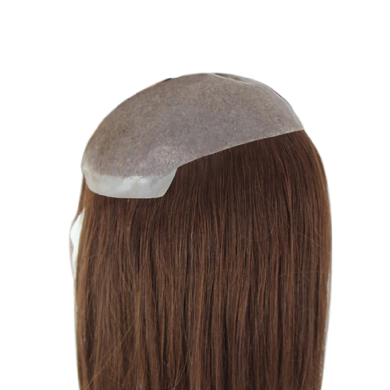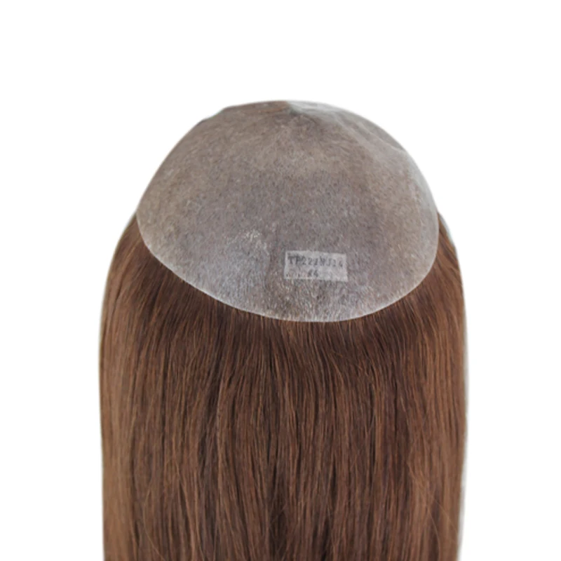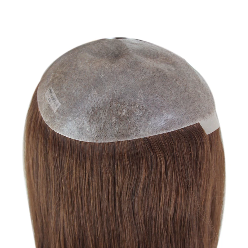 Women Toupee Full PU V Loop Injection Human Hair Wigs Indian Hair Extension Hairpiece System Brown Hair Topper Natural Color 613