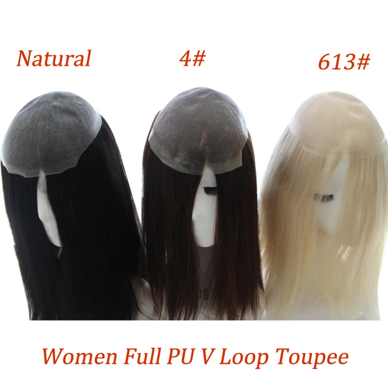 Hair Style: Chinese Hair Straight V loop Full PU Women Toupee Human Hair