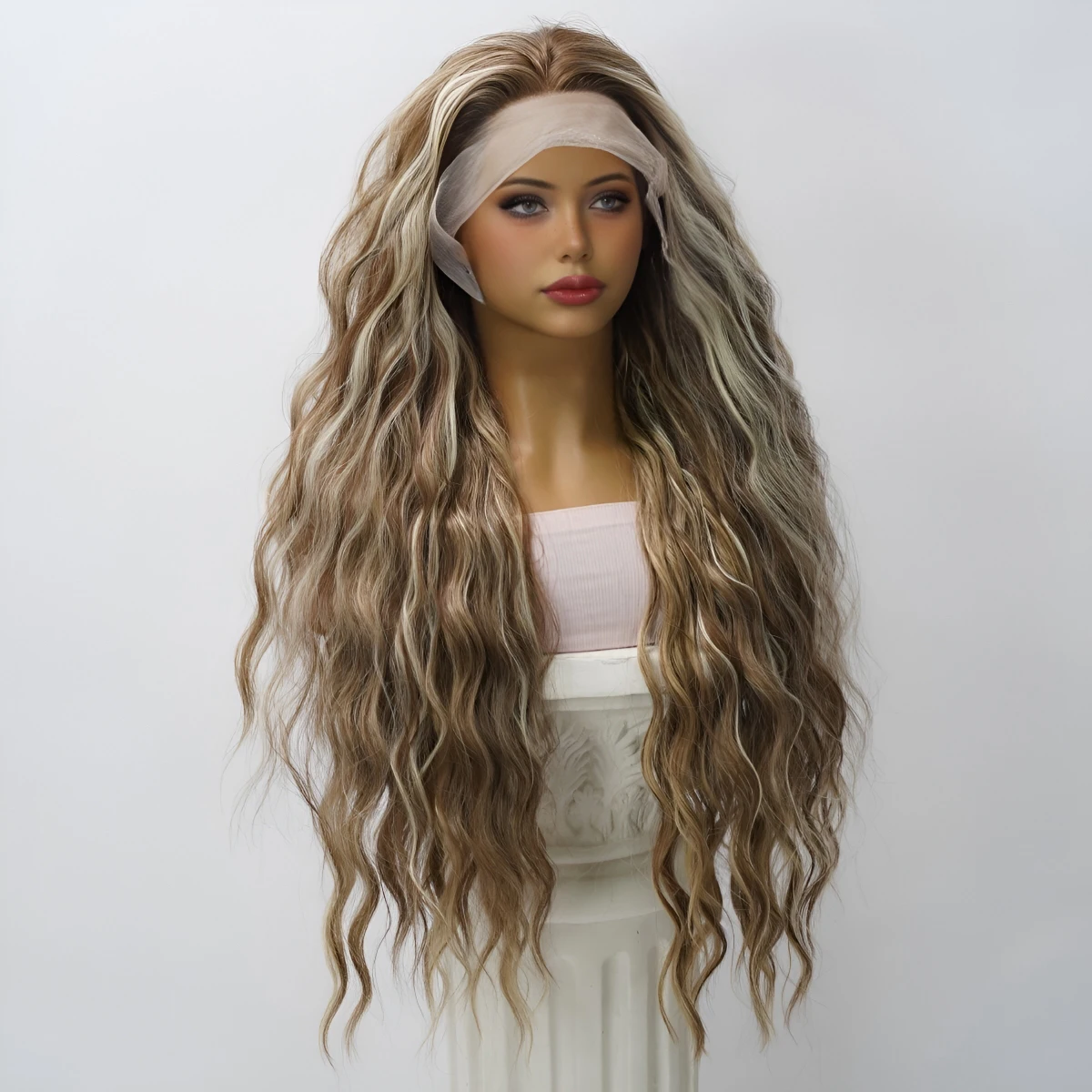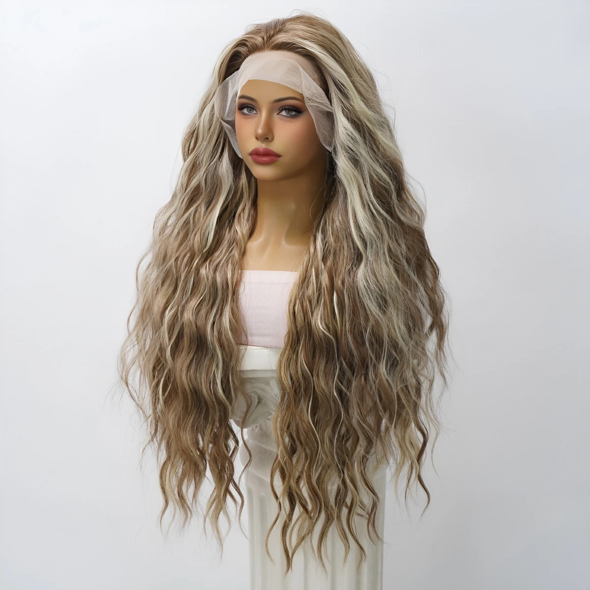 Women's Lolita Party Cos Wig Lace Women's Wig Gold Spot Dyed Wig Water Wave Curly Hair Synthetic Fiber