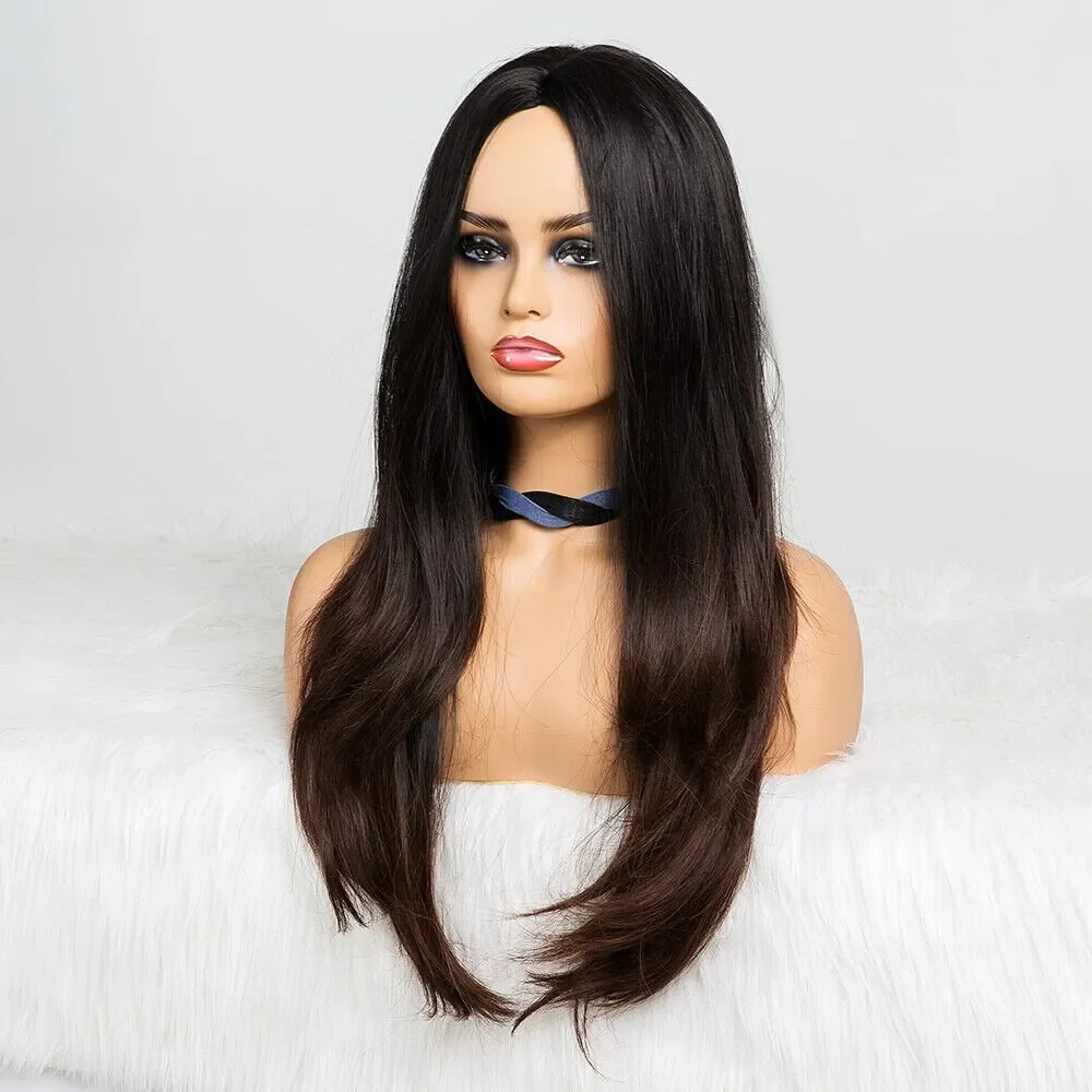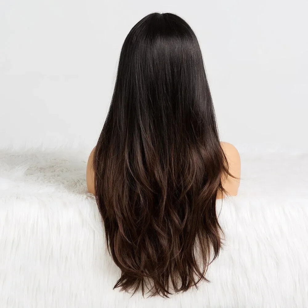 Women’s Long Ombre Brown Wavy Synthetic Wig Cosplay Heat Resistant Cosplay Party Hair wig