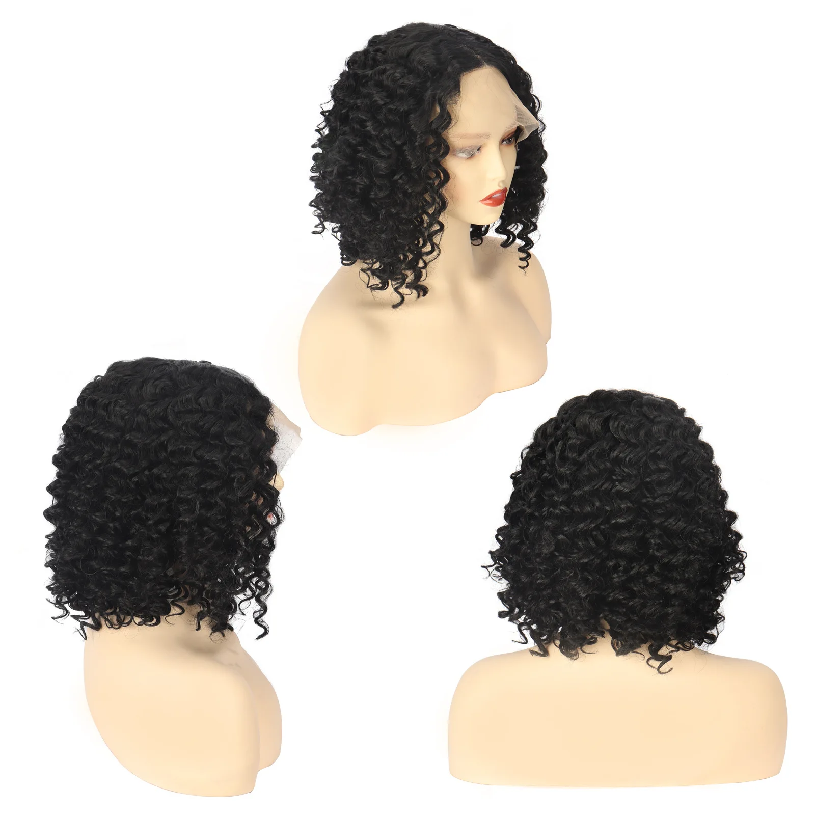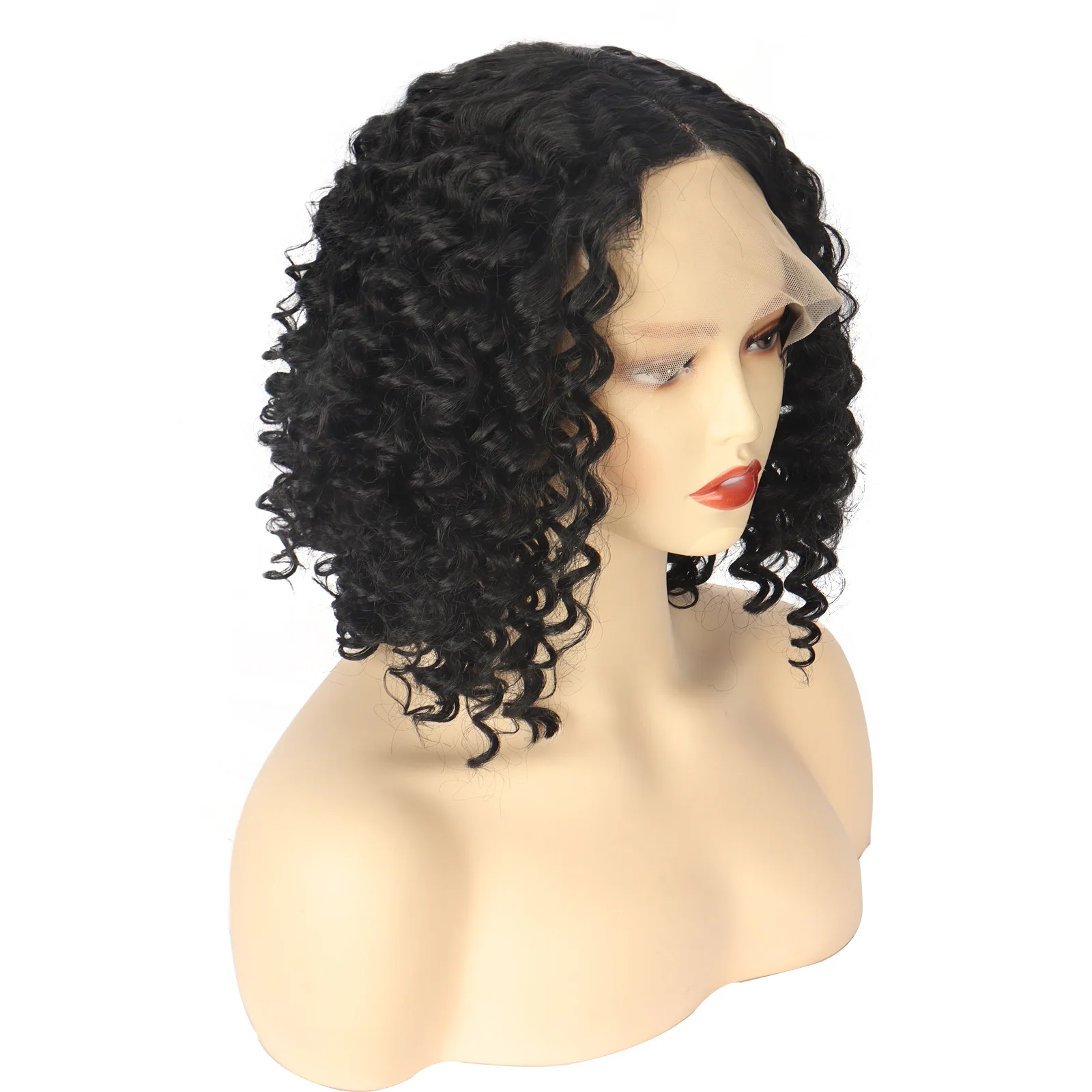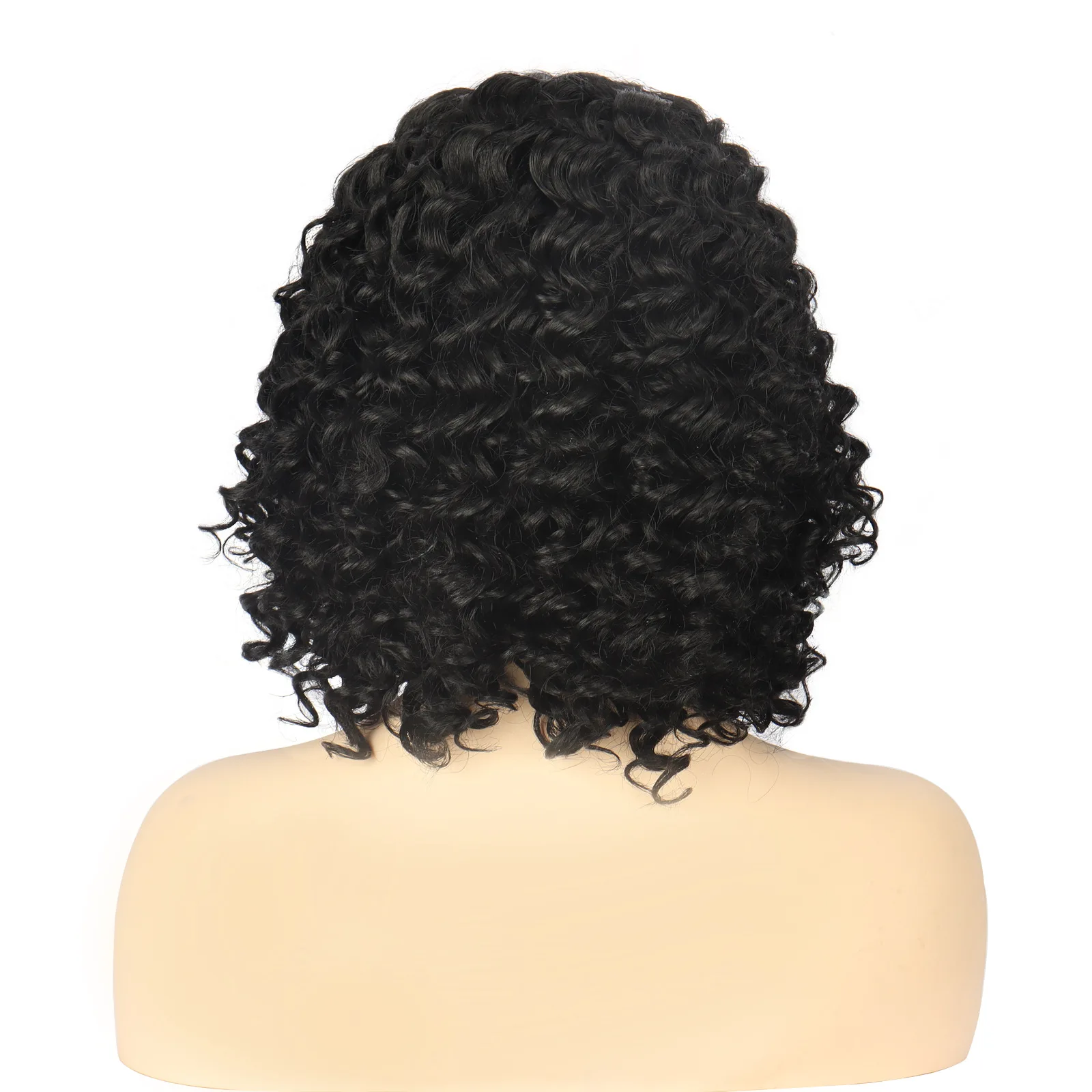 Women's Sexy 12“inch Medium Short Black Handmade Front lace Curly Synthetic human Hair Party Costume wigs