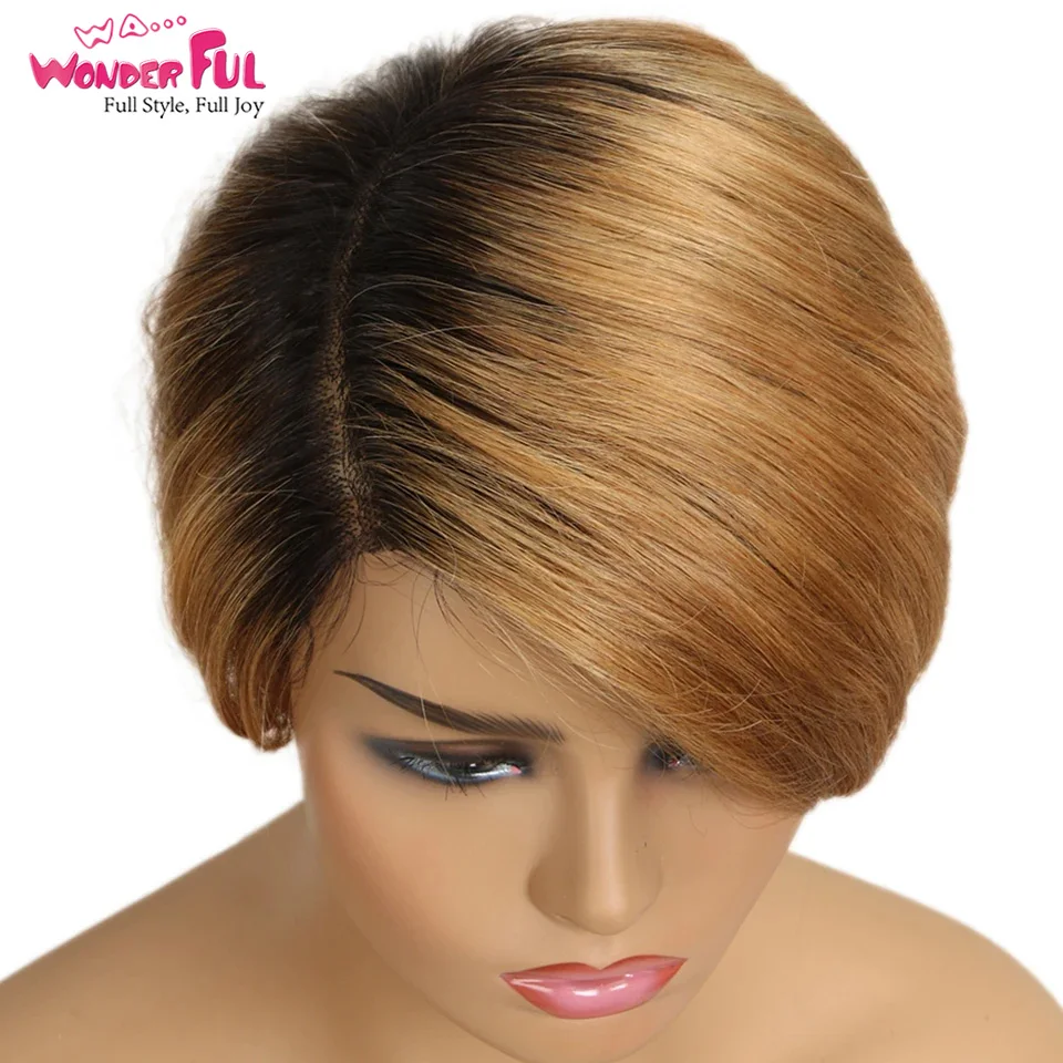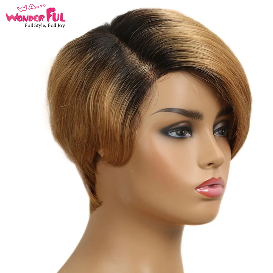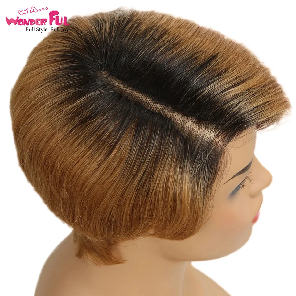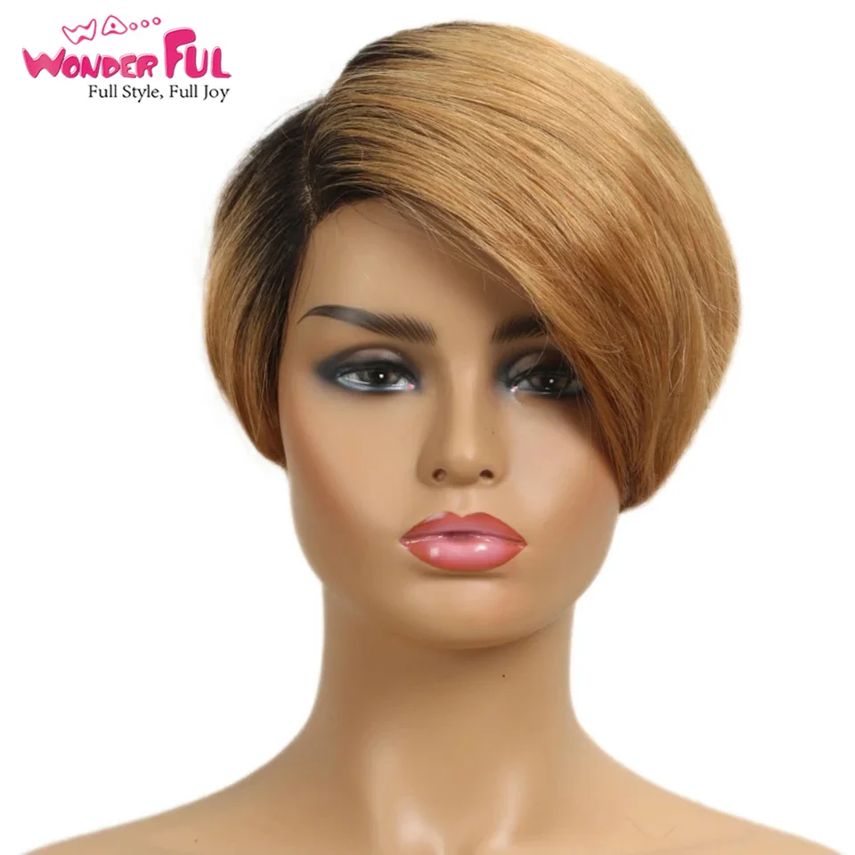 Women's Short Bob Pixie Cut Wig Deep Side T Part Lace Human Hair Wig 8 Inches 180% Density Straight Transparent Lace Front Wigs