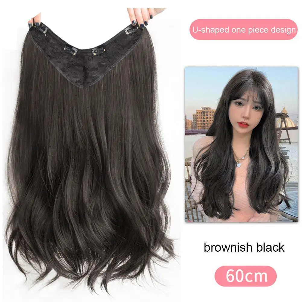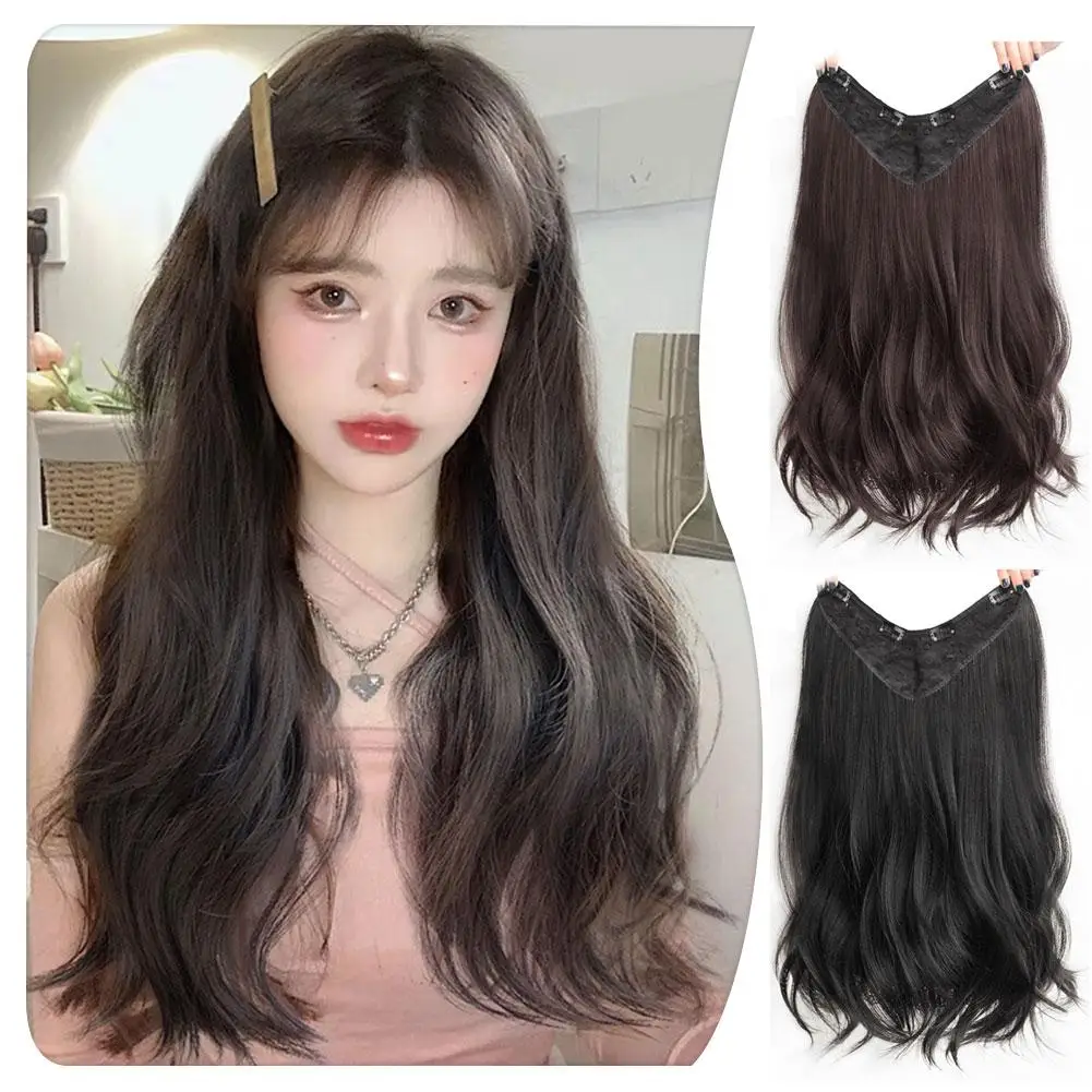 Women's V-shaped Micro-curly Long Hair Extension Synthetic Wig One-piece Hair Extension Piece Fluffy Increase Hair Volume