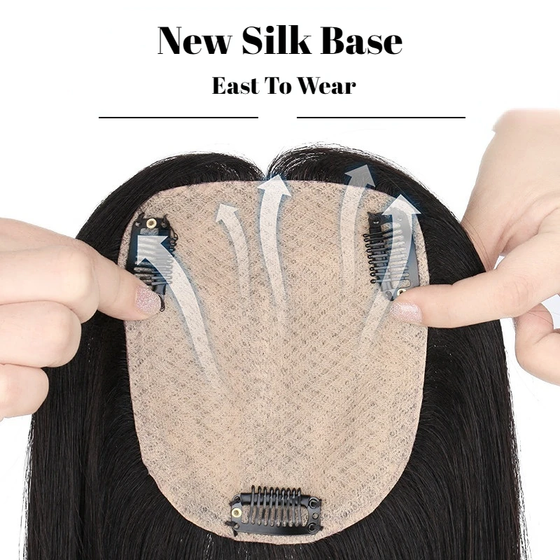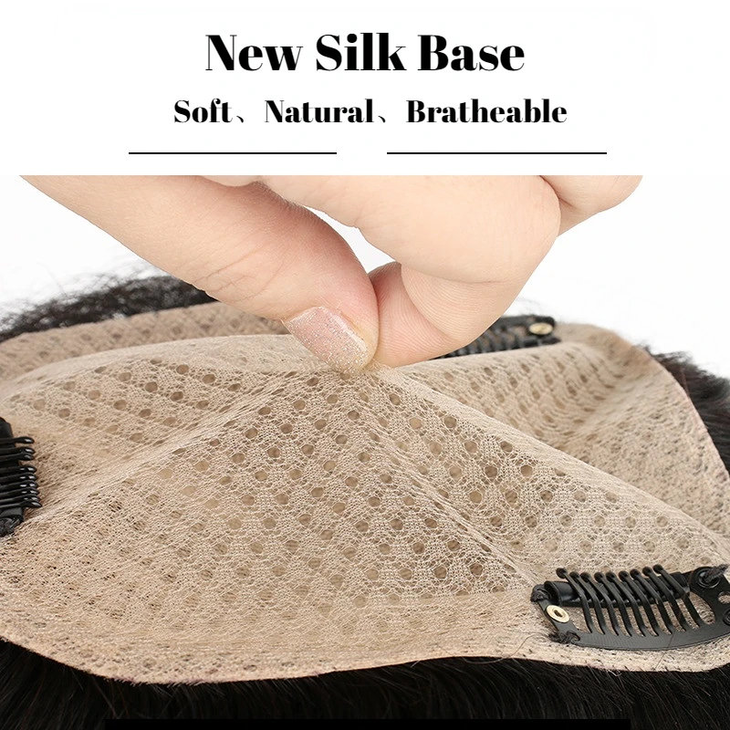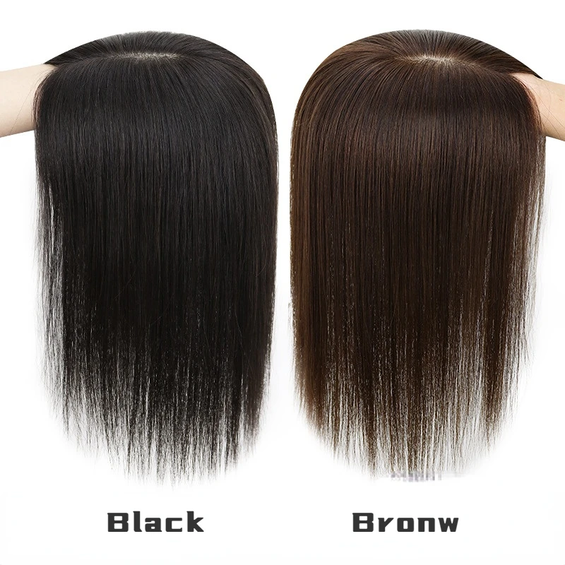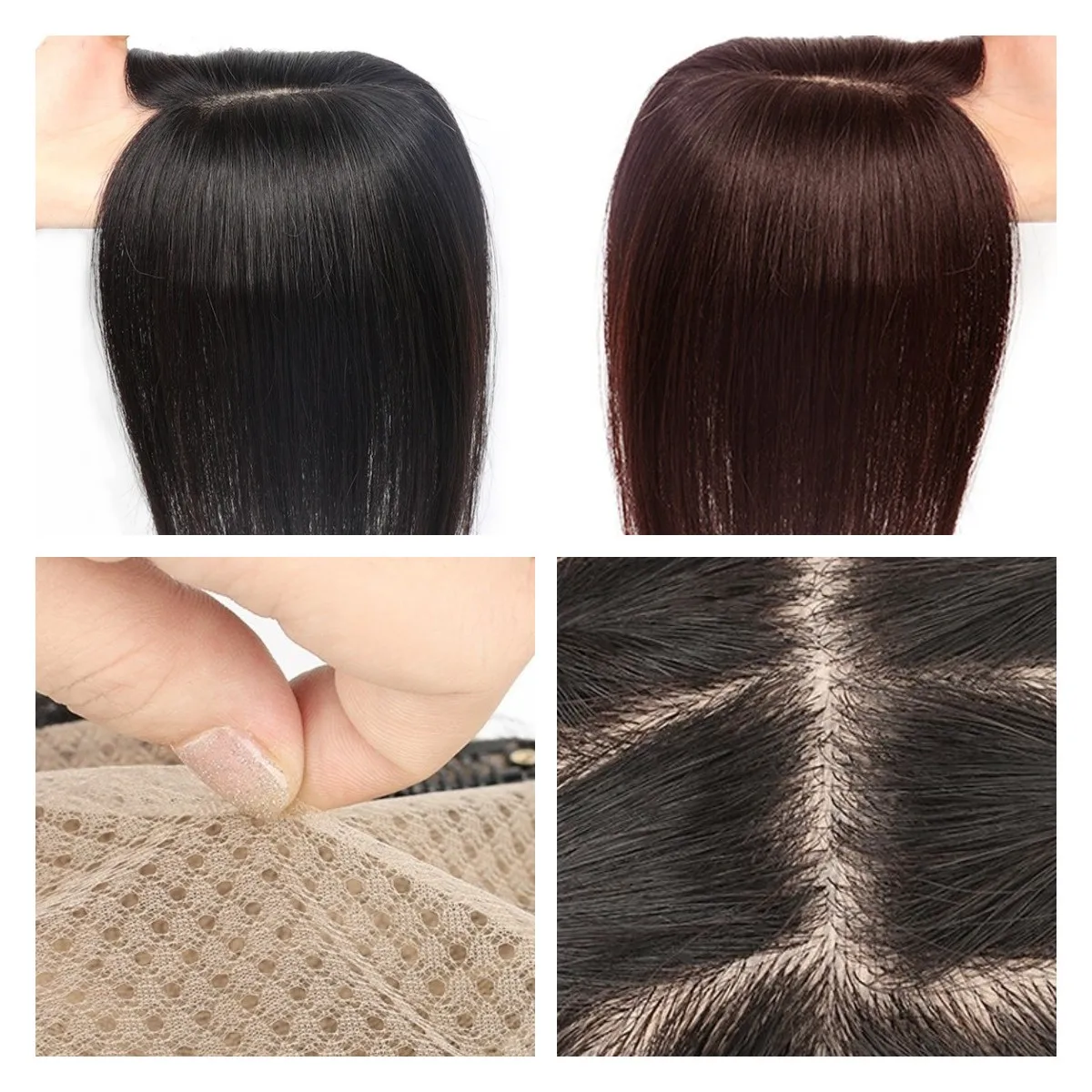 Women's Wig Clip In Hair Piece Women Real Human Hair Wigs Hand Made Lightweight Breathable Black Hair Closure Women Topper