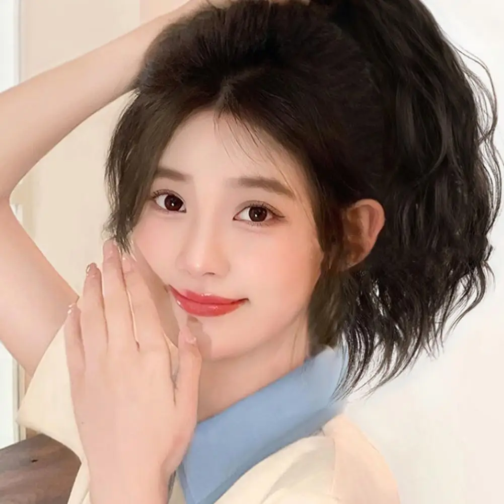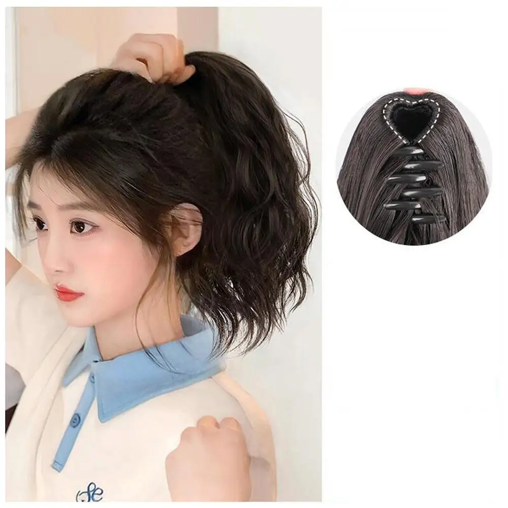 Women's Wig Grab Clip Synthetic Clip Style Hair Extension Low Ponytail Short Curly Hair Extension Natural Curly Hair Ponytail