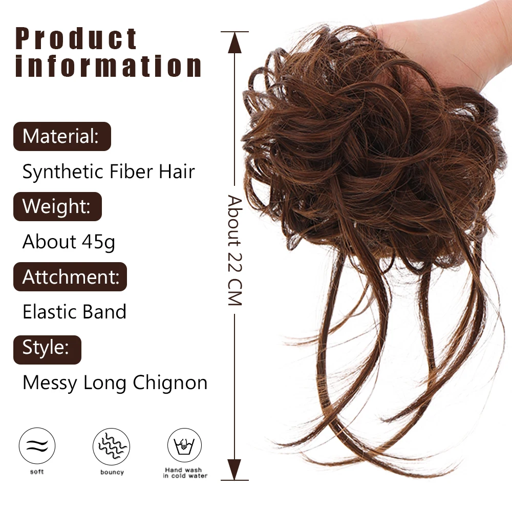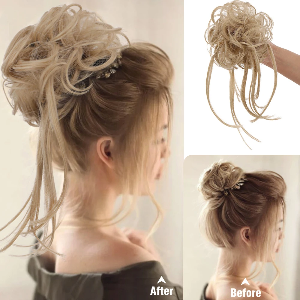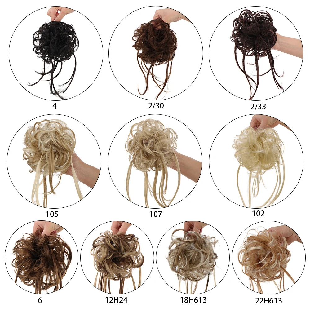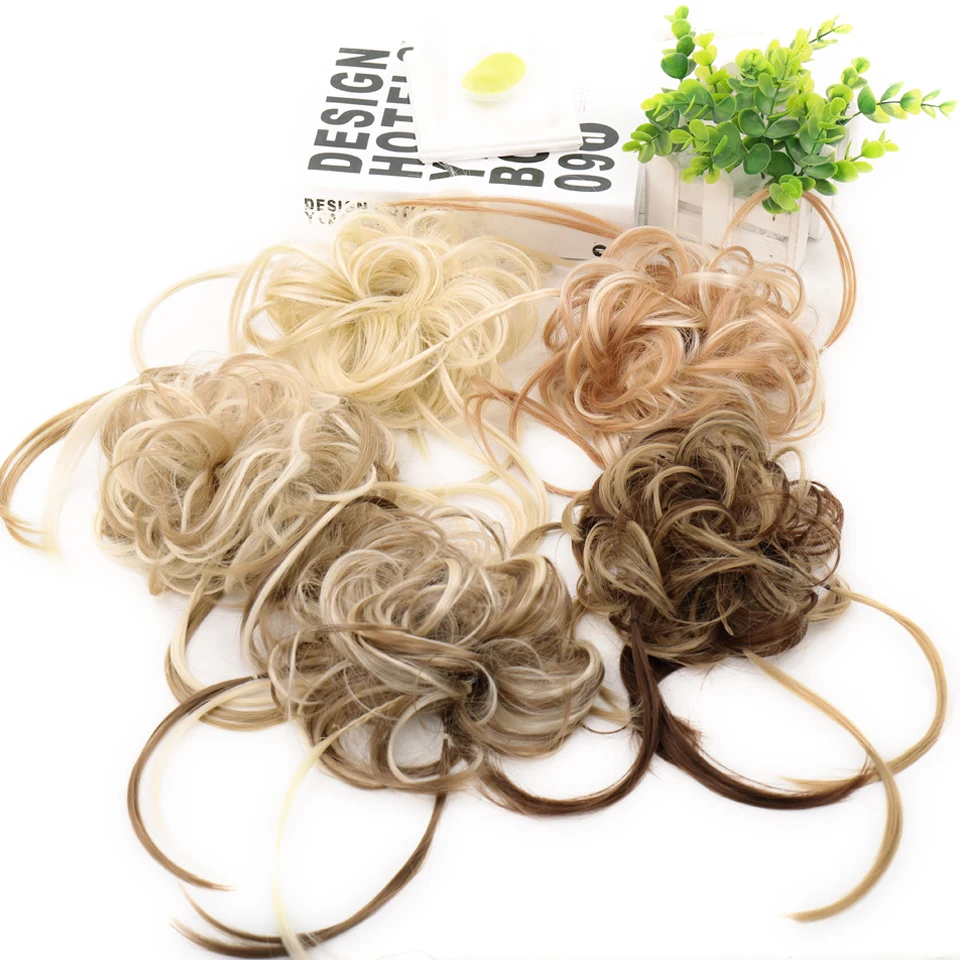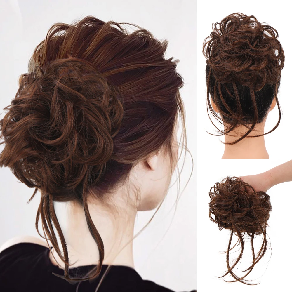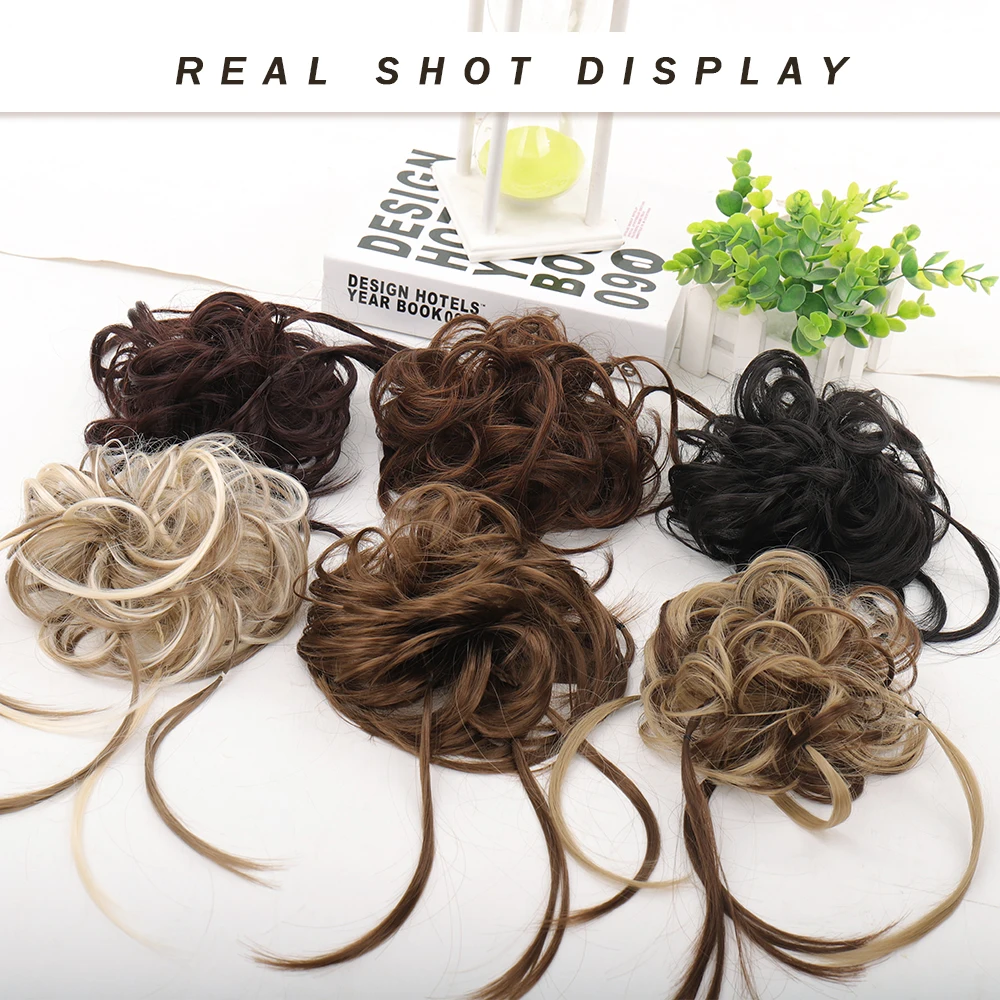 WTB Synthetic Hair Bands Curly Messy Chignon Elastic Scrunchy False Hair Pieces for Women Donut Updo Black Brown Hair Extension