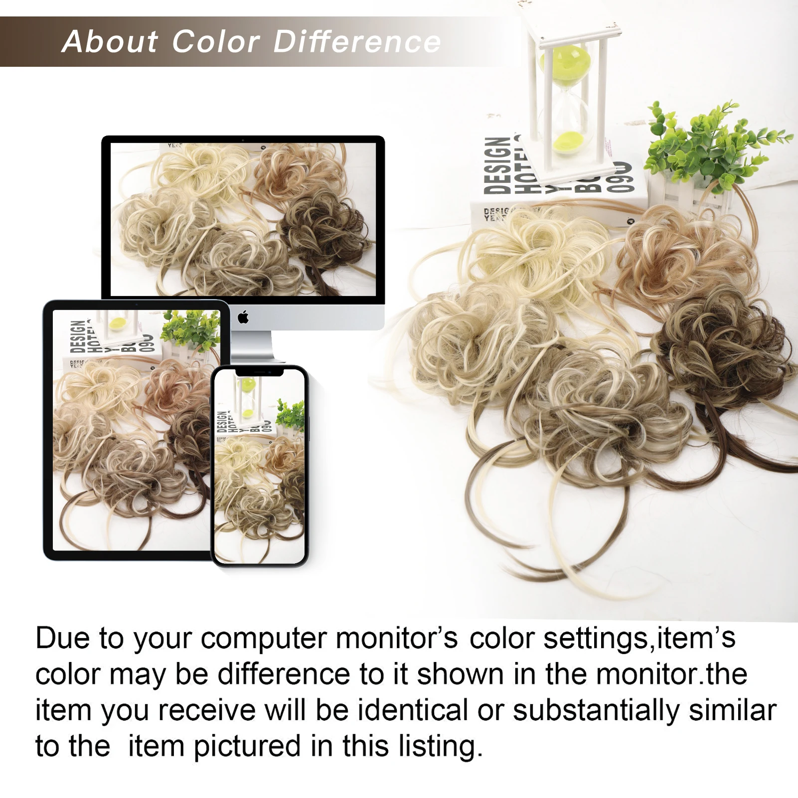 Material:Premium Quality Synthetic Hair, feels silky and soft like real human hair. Fit to all head sizes. Attached by a claw/crocodile clip with drawstring which will make you comfortable for all day Weight: 80G, Length:6"-8" Multiple Colors available in your choice as shown in